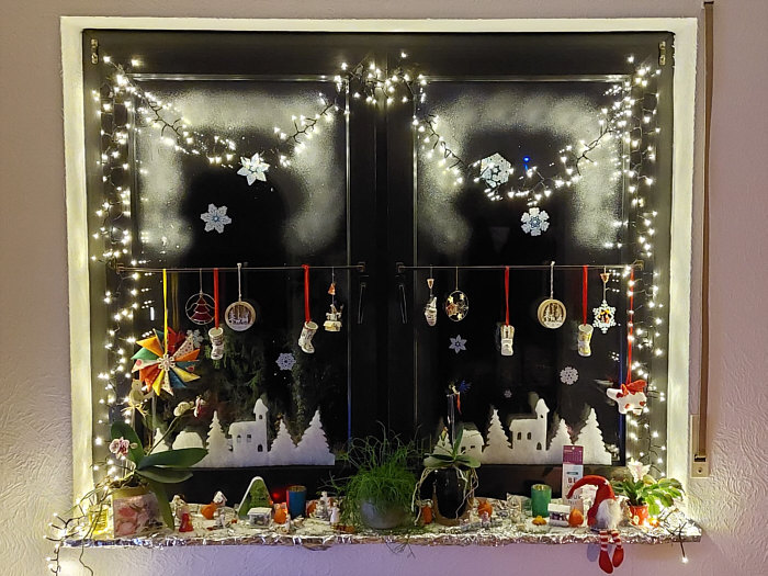 Lichter, welche Spitze) ? Ich habe ein paar Strohsterne und eine Lichterkette. Meine Eltern haben immer noch ein paar Lampions der Lampionsblume am Baum hängen. ![]() ![]() |