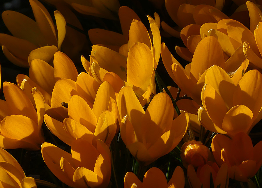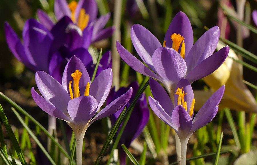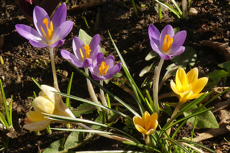 Die Farben gelb und lila leuchten in der Frühlingssonne ...