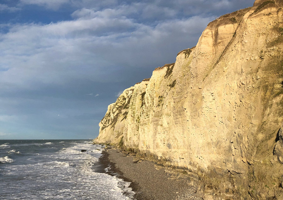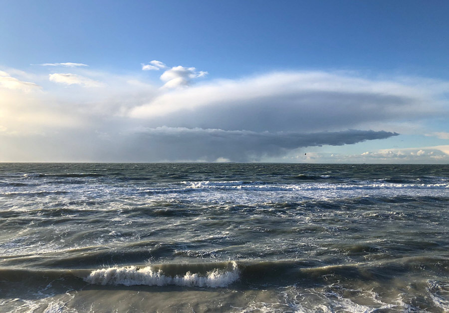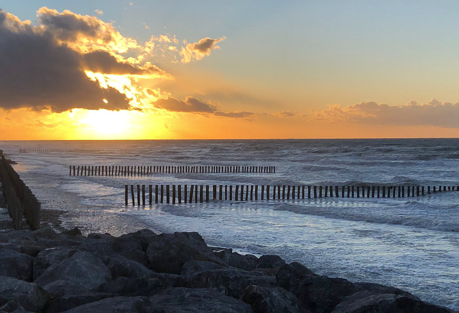 Michael, ein guter Bekannter von mir, war ein paar Tage in Frankreich am Ärmelkanal ... zwischen Calais und Boulogne sur mer. Und zwar an dem Sturm-Wochenende vor 1 1/2 Wochen. Wir dürfen heute hautnah dabei sein ... direkt am bewegten Meer. An einem Meerabschnitt, wo es Ebbe und Flut gibt und wie ... der Tidenhub, der Unterschied zwischen Ebbe und Flut, ist sagenhafte 8 Meter. Zum Vergleich: westliche Ostsee 30 Zentimeter, dt. Nordseeküste 3 Meter. Es geht aber noch höher, in St. Malo in Frankreich sind es 12 Meter. Hier also 8 Meter ... das ist Ebbe ... ![]() ... und das die Flut: ![]() Windig wars ... Windstärke 8 und mehr. ![]() ![]() Bei diesem Wind legen sich alle Gräser flach. ![]() Das ist Ambleteuse ... ![]() ... und das ebenfalls: ![]() Die Steilküste: ![]() Muschelzucht: ![]() Die Küstenbefestigung ... ![]() ... denn so kann es hier stürmen: Das ist Algenschaum: ![]() Der nächste Schauer bahnt sich an ... ![]() ... und dann dieser Sonnenuntergang: ![]() Heute: ganz besondere Bilder im Kalenderblatt, die es so hier noch nie gab. |