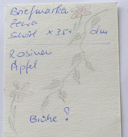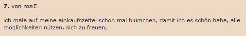 Der Seelenfarben-Ordner (2) Beginnen wir die heutige Bilderrundreise doch mal in einer Kirche ... ~~**~~ ... aber in einer besonderen Kirche ... ![]() ... das ist die von Aring fotografierte evangelische Kirche am Hohenzollernplatz in Berlin. Sie gilt als Hauptwerk deutscher expressionistischer Architektur und wurde zwischen 1930 und 1934 erbaut. ~~**~~ Dieses Bild ... ![]() ... ist Gedankenteil einer Idee von Chispeante. Man solle sich einen Ast oder eine Knospe aussuchen und sie fotografisch begleiten ... kalt ... kleine Knospe ... große Knospe ... Blatt ... Blüte. Den Lauf des Lebens in Bildern einfangen. ~~**~~ Ja, ich bin nun schon in 2022 in meinem Ordner ... und die Isarphilharmonie heb ich mir noch auf ... da warten noch Bilder und Zettel auf mich. Wird nicht vergessen, liegt da. ~~**~~ Ich zeige doch immer wieder mal einen gefundenen Einkaufszettel ... und rosiE hatte das dazu kommentiert ... ![]() ... und auch den Beweis geliefert: ![]() Aktuell müsste da wieder "Klopapier" drauf stehen, denn Beate sagte mir letztens "hast du gesehen, dass im Penny mal wieder das Toilettenpapier alle war und bei den Küchenrollen gabs auch nur noch ein paar" ... seufz. ~~**~~ Abreißkalender 4.2. von Sabine P. ... da war doch ein Verkehrsschild ... ![]() ... zu sehen ... und ein paar Lesern ist die Bank im Hintergrund aufgefallen. Die hat Sabine auch fotografiert gehabt: ![]() ![]() Das Draufsitzen wäre gar nicht so einfach, sagt sie ... die Bank ist ziemlich hoch. ~~**~~ Gise hatte mir Blümchen geschickt ... ![]() ... und "wie du siehst, siehst du nix". Auf den ersten Blick ... auf den zweiten sieht man was: ![]() ![]() Das war am 8. Februar ... da waren es noch Knospen. Ich hab mal nach einem Wikipedia-Bild geschaut, wie sie erblüht aussieht: ![]() Das ist Abeliophyllum distichum, in deutsch auch Schneeforsythie genannt. Oder auch weiße Forsythie. Sie kommt aus Korea und hat duftende Blüten. Während die normale Forsythie ja für Bienen und Hummeln nix taugt, ist diese hier eine willkommene Quelle für Nektar im späten Winter. ~~**~~ Auch bei Belo haben Anfang Januar ... ![]() ... weiße Glocken ein erstes Frühlingsläuten von sich gegeben. ~~**~~ Upps ... Rezept von Quark-Öl-Teig gefunden. Passt zu der Mail "deine Pizza zeige ich noch", die ich an Lieschen geschickt habe. Finde aber das Bild nicht mehr. Seufz. Bitte die Pizza noch mal an mich schicken, Lieschen. Upps ... habs doch gefunden ... war im Papierkorb ... ürgs ... mea culpa. Pizza gerettet, Anfang nächster Woche gibt es sie im Restaurant "was koche ich heute". ~~**~~ Achtung Nostalgieanfall ... Satu ... hat mir ein Bild von einem Mercedes-Benz O 321 geschickt. Mit Anhänger ... ![]() ... da fallen einem sofort die ganzen alten Lieder ein. ![]() Einsteigen ... durch eine schöne Gegend fahren ... und vorne steht einer und erzählt interessante Dinge. ~~**~~ Im Frankfurter Palmengarten weiß man genau, wovon die Besucher Mitte Februar träumen ... vom Frühling ... und deswegen ... ![]() ... kann man (und frau und DagmarPetra) dort vorgezogene Frühlingsblumen bewundern und von dem träumen, was die Natur noch alles in den nächsten Wochen zu schenken vermag. ~~**~~ [ wird fortgesetzt ] |