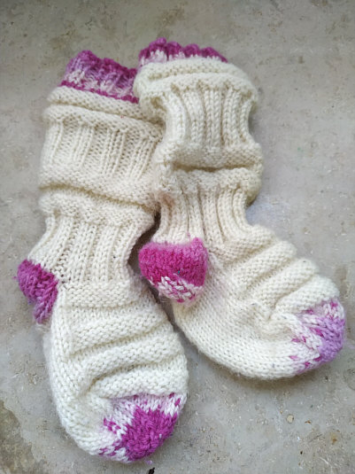 Gestern schrieb ich "die Geschichte mit den Socken bekommt ein eigenes Kalenderblatt". Und hier ist die Geschichte mit den Socken ... Heike erzählt: Guten Tag ... als ich an diesem Tag, wie immer, das Kalenderblatt gelesen habe, (Anmerkung Engelbert: das Kalenderblatt mit Wolle und Socken von Petra H.) fiel mir eine schöne Begebenheit zum Thema "Socken stricken" ein. Bis vor kurzem war ich bei Postcrossing aktiv. Man meldet sich an und bekommt dann zufällig Adressen, um an diese Postkarten zu schreiben. Gleichzeitig erhält man von Fremden auch Postkarten in den eigenen Briefkasten zurück. Jeder Postcrosser hat ein Profil, wo man etwas über Hobbys, Beruf oder anderes erfahren kann. Und jetzt zur Begebenheit. Ende 2017 habe ich eine Karte nach Finnland geschickt. Die Empfängerin gab als Hobby "Socken stricken" an. Meine Tochter war damals schwanger und ich wollte Babysocken stricken, hatte aber keine Ahnung. Also fragte ich sie, ob sie für mich eine Anleitung zum Stricken hat. Am 12.01.2018 hatte ich einen dicken Brief im Briefkasten, darin 2 Paar gestrickte Socken. ![]() ![]() Ich war überrascht und habe mich sehr darüber gefreut. Am 26.01.2018 kam ein zweiter Brief. Darin schrieb sie mir die Geschichte zu den Socken. Es ist die Geschichte der finnischen Zugsocken. Während des 2. Weltkrieges konnte ein Zug mit Flüchtlingen wegen kaputter Gleise nach Bombardierung nicht weiterfahren. Wahrscheinlich war es im Winter und alle mussten lange Zeit auf die Weiterfahrt warten. Es war üblich, dass Frauen für Soldaten Strümpfe, Fäustlinge und Wollmützen strickten. Im Zug waren eine solche Frau und auch eine junge Mutter mit einem Baby. Das Kind war schlecht gekleidet und es war sehr kalt. Die ältere Frau strickte für das Baby ein paar Socken, damit das Kind nicht mehr frieren musste. Die finnischen Zugsocken werden bis heute so gestrickt und sind in Finnland bekannt. Auch meine Enkelin haben die Zugsocken warm gehalten. Viele Grüße - Heike aus Augustusburg |