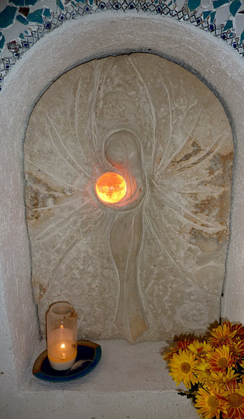 Vorgestern schrieb ich "auch die Hauskapelle bekommt ein eigenes Kalenderblatt". Und hier ist die Geschichte mit der Hauskapelle ... Helga F. erzählt: Das ist mein 2011 selbst erbautes Hauskapellchen. Die Bauzeit war ca. ein halbes Jahr, beim Aufsetzen des Daches hatte ich Hilfe von meinem Mann. Diese kleine Kapelle entstand aus Dankbarkeit, ich hatte eine lebensbedrohliche Krankheit überwunden. Ein Ort der Stille und mein persönlicher Rückzugsort, der aber auch von der Familie, Freunden und Nachbarn gern besucht wird. ![]() ![]() ![]() ![]() ![]() (Der Baum des Lebens) |