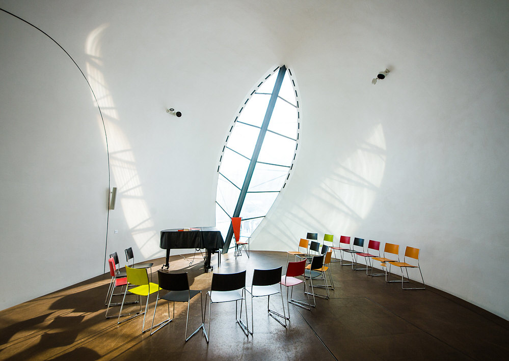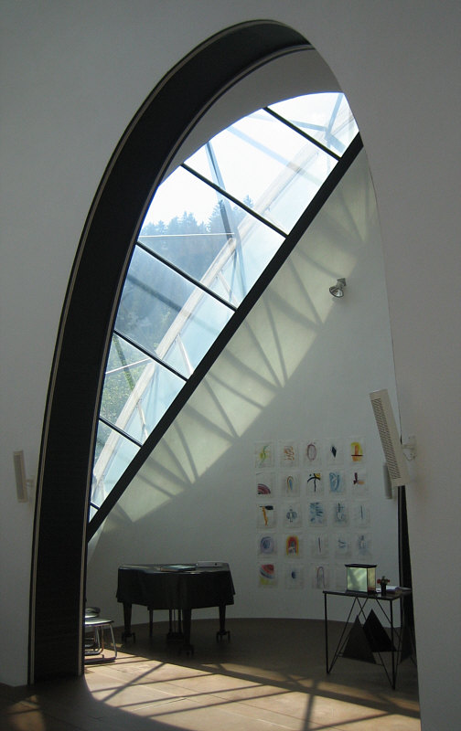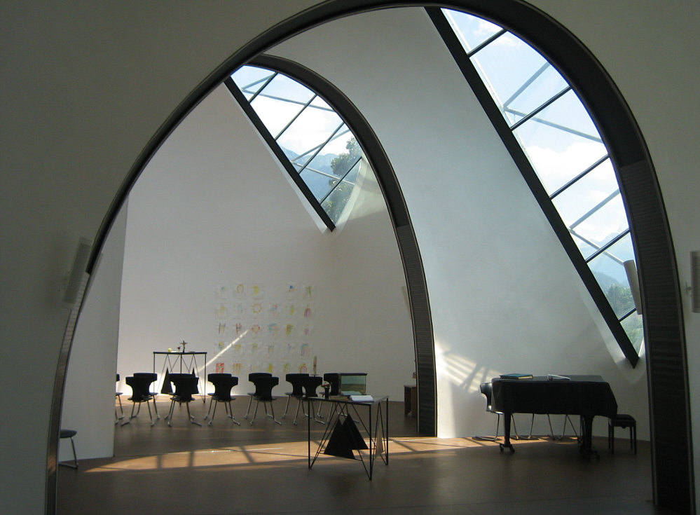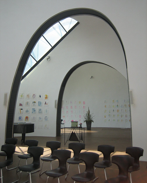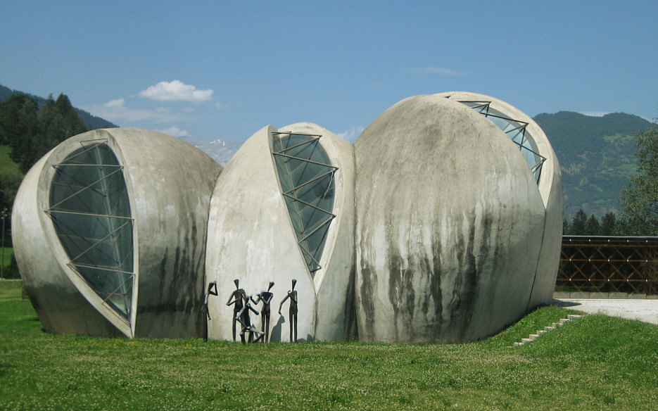 Die Kirchengemeinde selbst wurde erst im Jahre 1968 gegründet. Damals gab es aber nur ein Pfarrhaus mit angrenzendem Gemeindesaal. Aber das Land für einen späteren Kirchenbau wurde schon mal erworben. Besonders große Gottesdienste feierte man in der benachbarten etwas größeren Stadt, aber irgendwann war es dann Zeit für eine eigene Kirche, zumal die Mitgliederzahlen ständig stiegen. 1994 gings los ... Studienaufträge wurden ausgeschrieben, die Kirche sollte 240 Gläubigen Platz bieten. Vier Jahre später wurde die Kirche mit einer noch provisorischen Heizung in Betrieb genommen, der offizielle Einweihungsgottesdienst nach Fertigstellung der Kirche fand im Januar 2002 statt. Das ist also eine sehr neue Kirche. Das hier ... ![]() ... sind keine Altglascontainer, sondern die Idee der Kirche. Drei runde Baukörper, die mit versenkbaren Wänden abgetrennt werden können. Zum benachbarten Pfarrhaus soll es einen Verbindungstrakt geben und der Turm soll frei neben der Kirche stehen. Das war die Idee der Kirche ... und sie wurde auch umgesetzt. ![]() So sieht die Kirche von außen aus ... innovativ ... aus Stein ... und leider nicht selbstreinigend. Wir sehen Berge ... und wir dürfen deutsch sprechen und treffen in dieser Kirche Menschen des evangelischen Glaubens. 7 Arbeiten wurden damals eingereicht und Werner Schmidt bekam den Zuschlag. Zwischen den drei "Kugeln" gibt es Trennwände, die man herunter lassen kann. Von der anderen Seite sieht die Kirche so aus: ![]() Hier sieht man auch den Verbindungsgang zum architektonisch "normalen" Pfarrhaus. Das ist Schalenbauweise, mit einem Metallgitter überzogen und darauf kommt Spritzbeton mit einer Dicke von 15 Zentimeter. Die Innenausstattung gestaltete Diederik Peper und den Eröffnungsgottesdienst leitete Pfarrer Roland Härdi. Danach trat er in den Ruhestand, aber ich denke nicht, dass die Form der Kirche daran schuld ist ;)). Innen gibt es kein vorne und hinten und das ist auch so gewollt. Wo man auch steht, was man sieht ... es könnte überall in der Kirche sein. Die Idee ist, dass jeder Besucher seinen eigenen Standpunkt findet und dadurch auch seinen ganz persönlichen Zugang zu Glauben und Gott. Ein Fenster ist zum Himmel gerichtet, eins zum Horizont und das dritte zur Straße und den Menschen. ![]() ![]() ![]() Unser Standort ist etwa in der Mitte zwischen dem Bodensee und dem Lago Maggiore, in Graubünden, im 1500-Seelen-Dorf Cazis, die nächstgrößere Stadt ist Thusis. Die Kirche wird "Steinkirche" genannt. ![]() Willkommen in der Sonntagskirche von Seelenfarben :)). Deine Gedanken zur Kirche und zum Kircheninnenraum ? |