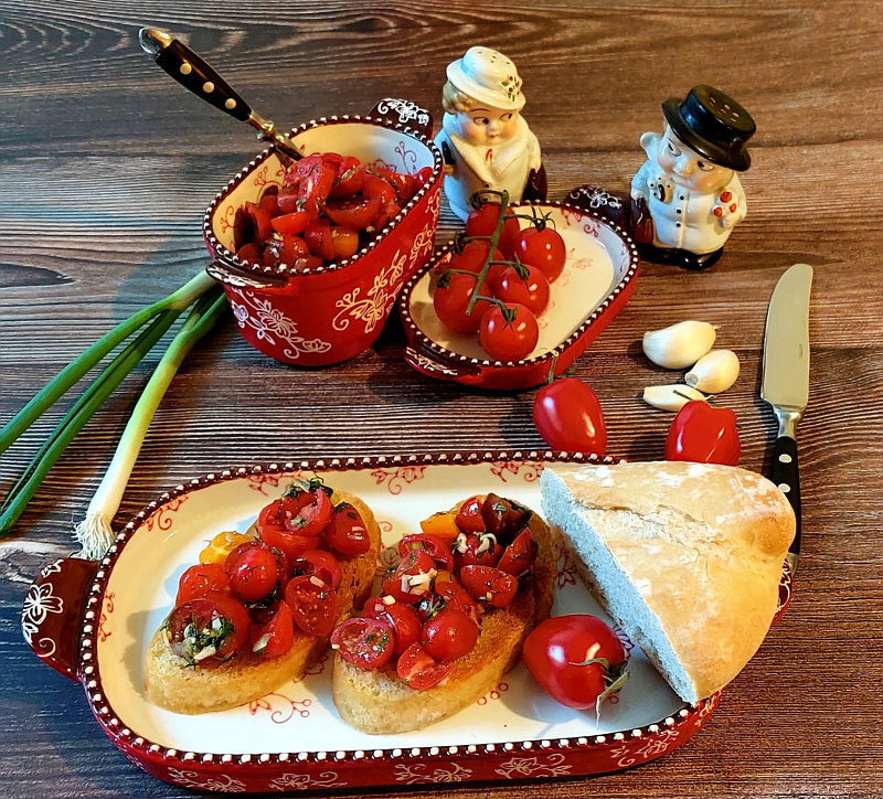 Mal ehrlich ... ... wenn ich das fotografiere, was auf meinem Teller ist, dann schöpfe ich das aus der Pfanne oder aus dem Topf auf den Teller und dann wird einfach fotografiert ... ohne besonders anzurichten. Ich weiß, es wäre so viel mehr möglich ... aber den Aufwand tue ich mir nicht an ;). Und ... ganz wichtig ... den Aufwand muss auch keiner betreiben, wenn ich mal wieder um "schickt mir Teller" bitte. Da darf dann auch einfach ganz normal fotografiert werden, was auf dem Teller liegt. Aaaber ... was alles möglich ist, wenn man mit besonders viel Liebe seine Teller fotografiert ... das zeigt uns heute Petra H.: ![]() Wurstsalat 1 Geflügelwurst 1 Zwiebel 6 Gewürzgurken Salz Pfeffer etwas Öl Geflügelwurst, Zwiebel und Gurken in kleine Würfel schneiden. Mit Salz und Pfeffer abschmecken. Ich mache ein paar Tropfen Olivenöl mit dran und einen kleinen Schluck Gurkenbrühe. Alles mischen und fertig ist der Salat. ![]() Leberkäse, Sauerkraut, Kartoffelpüree mit Möhren Ich koche Kartoffeln und Möhren zusammen im Topf. Anschließend kommt etwas Butter, Milch und etwas geriebene Muskatnuss dran. Mit dem Mixer verrühre ich dann alles. Sauerkraut war fertig gekauft. Den Leberkäse habe ich von beiden Seiten leicht angebraten. ![]() Reissuppe mit Gemüse und Hähnchenfleisch Ich habe Hähnchenschenkel mit Karotten und Blumenkohl ca. 45 Minuten gekocht. Gewürzt mit Würzpulver. Anschließend habe ich das Hähnchenfleisch klein geschnitten und 2 Beutel Kugo-Reis mit Gemüse in den Topf gegeben und nochmals alles 10 Minuten gekocht. ![]() Eiersalat Eier Salz Pfeffer Etwas Senf Schnittlauch Eier und Schnittlauch kleinschneiden und mit Salz, Pfeffer und Senf abschmecken. Dazu gibt es Baguette. ![]() Bruschetta Tomaten Salz Pfeffer Knoblauch Dill etwas Olivenöl für den Salat Ciabatta Alles klein schneiden und untereinander mischen. Ciabatta in Scheiben schneiden und in Olivenöl etwas anbraten. Ciabatta mit Bruschetta belegen. ![]() Rinder-Steak aus Uruguay mit braunen Champignons und Sprossen. ![]() Salat aus Tomaten, Gurken und Mais. Gewürzt mit Salz, Pfeffer, Olivenöl und etwas Essig. Alles gut mischen. ![]() Gänseblümchen-Aufstrich 250g Quark 150g Creme Fraiche 2 1/2 Essl. zerkleinerte Gänseblümchen Schnittlauch Petersilie 1 Gewürzgurke Salz Pfeffer Knoblauch Alles gut mischen. ![]() Kleine Gugelhupfs ![]() Baguette mit Avocado-Aufstrich 1 weiche Avocado 4 Kirschtomaten 1 halbe Chilischote Salz, Pfeffer und Knoblauch 1 Schuss Olivenöl Dill Die Avocado teilen, den Kern entfernen und das Fruchtfleisch aus der Schale mittels Löffel heben. Das Avocadofleisch mit einer Gabel fein zerdrücken, Tomaten vierteln, Dill hacken, die Chilischote vom Gehäuse befreien und auch hacken. Alles gut vermischen. Dazu habe ich Baguette gereicht. |