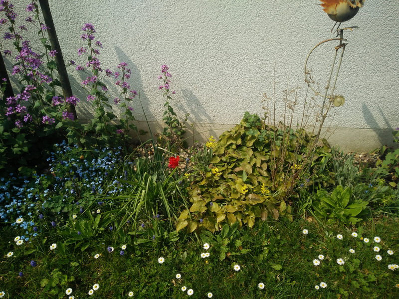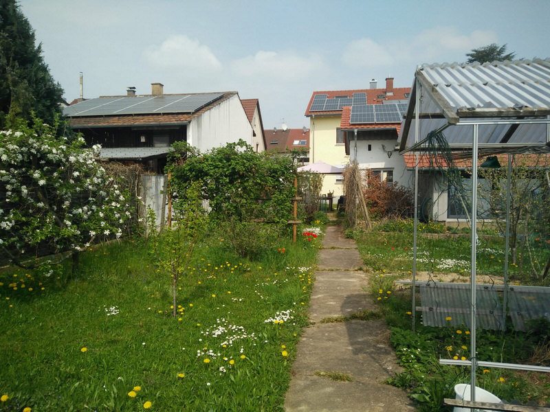 Heute sind wir mal woanders ... denn heute heißt es offene Gartenpforte ... zumindest virtuell ... denn wir sind genau hier: ![]() Das Ganze nennt sich "Lauras Garten" ... und Laura sagt folgendes dazu: 1 - Haus mit 3 Unterstand 2 - Schopf (Schuppen), dahinter 5 Hühnerstall Zwischen 5 und 6 ist eingezäunt, da spielte mein Sohn gerne 4 und 6 sind Wege. Die kleinen Vierecke unsere Mülltonnen Der graue Dreiviertelkreis ist der Sitzplatz Hellgrüne Linien sind Beete Hellgrüne Kreise Johannisbeersträucher Dunkelgrüne Linie ist die Brombeerhecke Die braunen Kreise sind Bäume (5 Apfel, 3 Birne, 1 Aprikose, 1 Zwetschge) Die offenen Vierecke sind unsere Beete, das linke war mal für Zucchini, die sind nun auf der anderen Seite, dafür dort alle möglichen Blumen (später blühend) das mittlere für Tomaten und das rechte für Gurken, Kohlrabi, Paprika, Lauch, etc.. Die Erdbeeren sind in dem kleinen Viereck neben dem Hühnerstall. Und nun gibts die Bilder zu den Erklärungen: ![]() ![]() ![]() ![]() ![]() ![]() ![]() ![]() ![]() ![]() ![]() ![]() Ich bringe mal ein paar Stühle ... denn wir bleiben ein paar Augenblicke an diesem schönen Fleck. |
