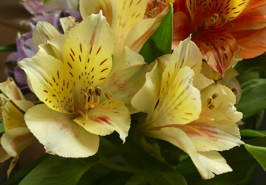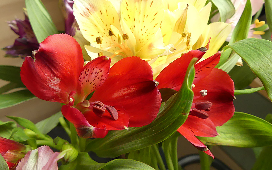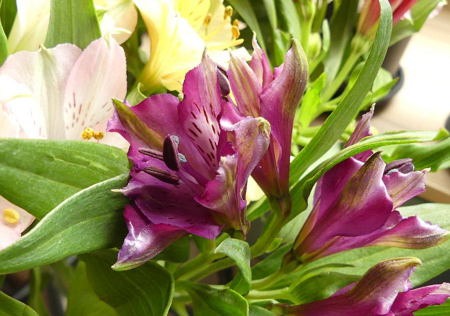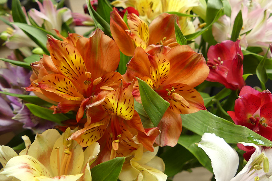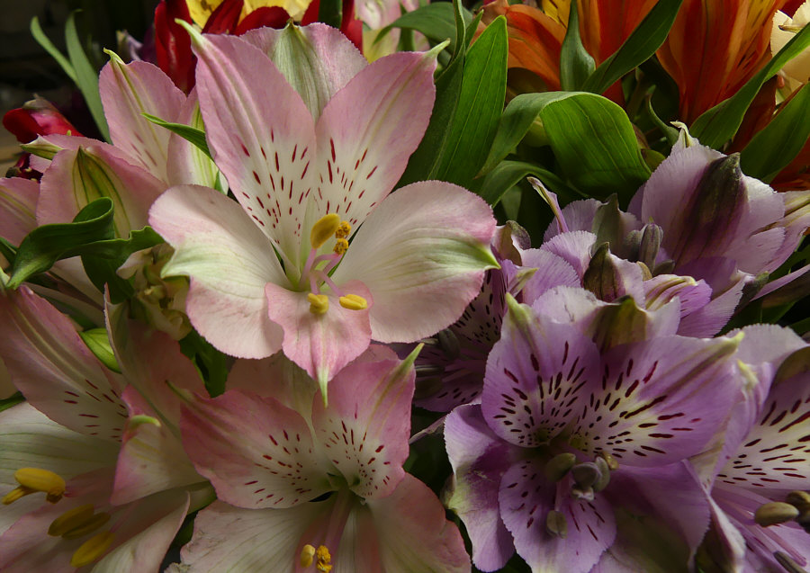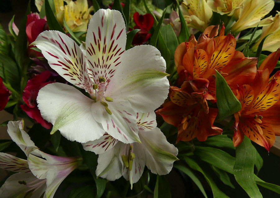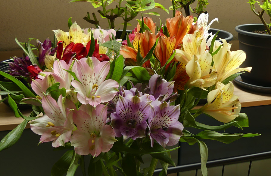 Blumen, die ich besonders gerne mag: Da gibt es so viele Sorten, ich kann mich da nicht auf eine Lieblingsblume festlegen. Tulpen sind toll ... Ranunkeln wunderschöne Blumen ... Rosen natürlich auch. Und so weiter ... jede Blume ist ein Wunderwerk. Ich zeige Euch mal den Blumenstrauß, der jetzt aktuell in meiner guten Stube steht: ![]() Manchmal steht Alstroemeria bei der Blume dabei, manchmal Inkalilie. Ich mag diese Blume sehr ... so farbig, so filigran, so vielfältig: ![]() ![]() ![]() ![]() ![]() ![]() ![]() |