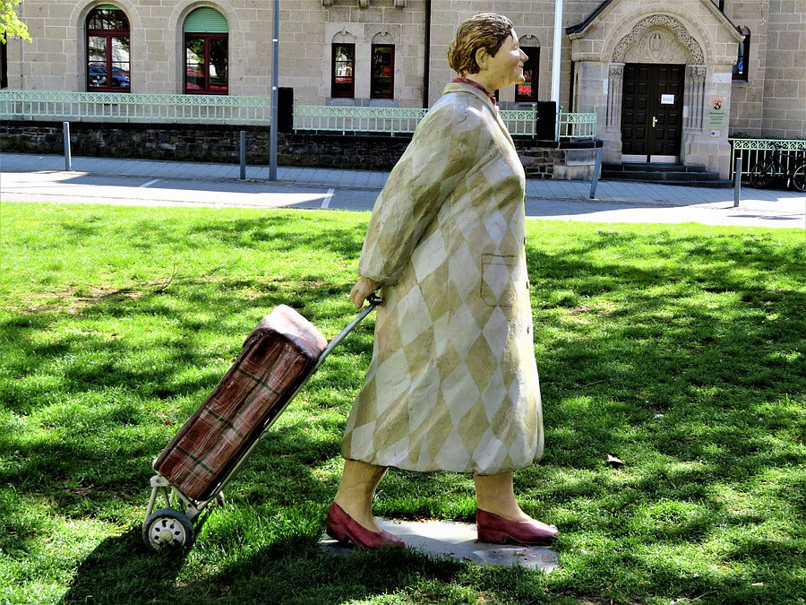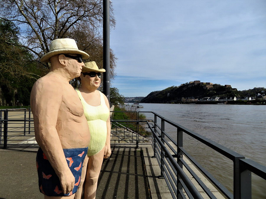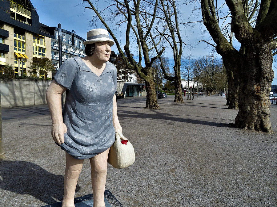 Von den Kalenderblättern, die ich noch zeigen will ... ... zeige ich heute ... Nummer 6 - montags, dienstags, mittwochs ... jeder Tag ... ... jede Tage ... alle Tage ... Alltag ... am Tag nach dem Sonntag passt "Alltag" ganz gut. Der Tag für die "Alltagsmenschen" ... keine Sonntagsmenschen ... Menschen wie du und ich. In Koblenz gibt es aktuell solche Menschen zu sehen. Seit dem 1. April und noch bis zum 5. Juli ist in der Koblenzer Innenstadt die Ausstellung "Alltagsmenschen" der Wittener Bildhauerin Christel Lechner zu sehen. Diese Dame ist ja für diese Skulpturen bekannt und 40 davon stehen aktuell in Koblenz an 12 verschiedenen Schauplätzen ... und zwar so, dass die in das Stadtbild integriert sind. Man läuft an ihnen vorbei, so wie man an "Menschen wie du und ich" eben vorbei läuft. Inge war dort und hat uns Bilder mitgebracht: ![]() ![]() ![]() ![]() ![]() ![]() ![]() ![]() ![]() ![]() ![]() ![]() Herzerwärmende Kunst, die den ganz normalen Menschen abbildet. Kunst, die man versteht. Alltag mit kleinem Augenzwinkern. |