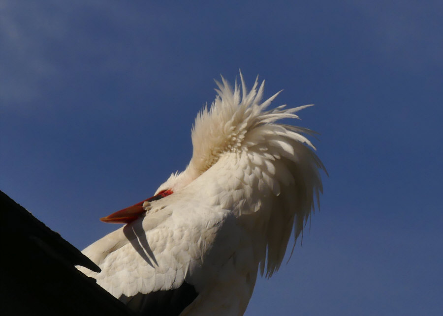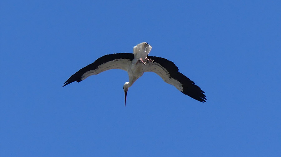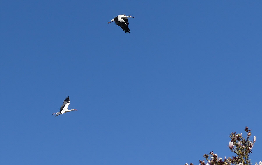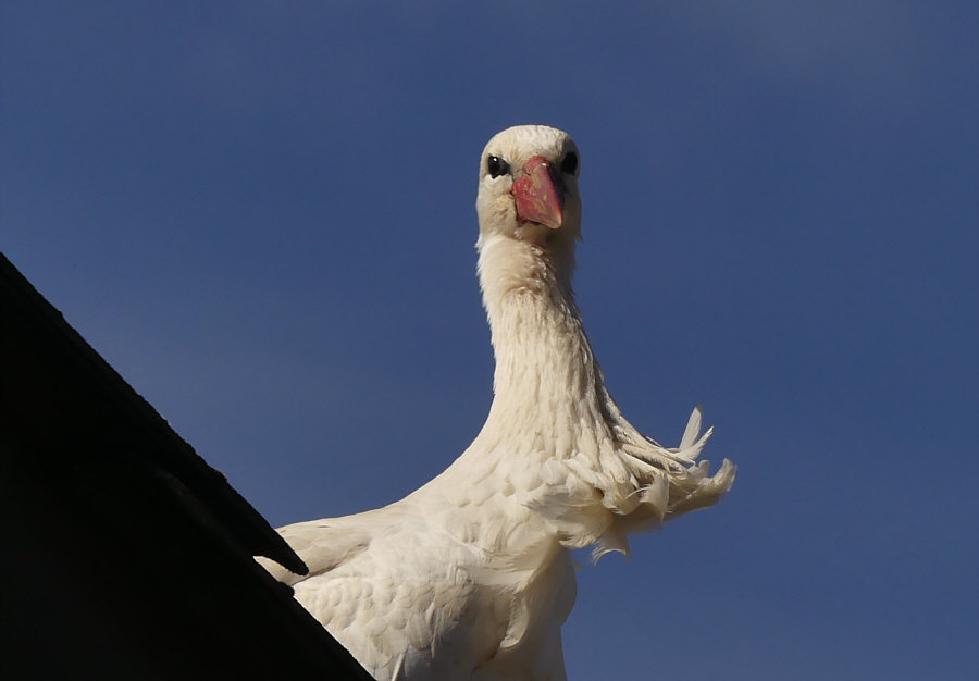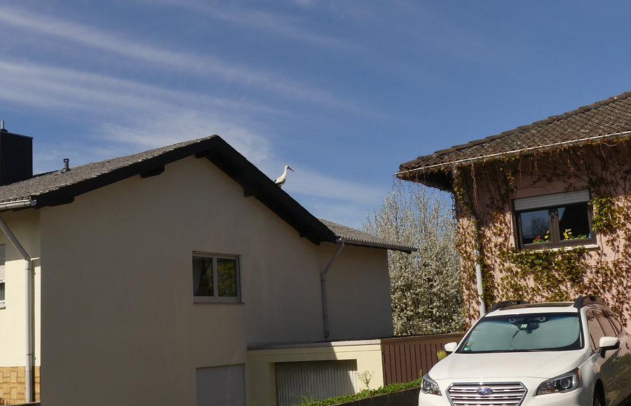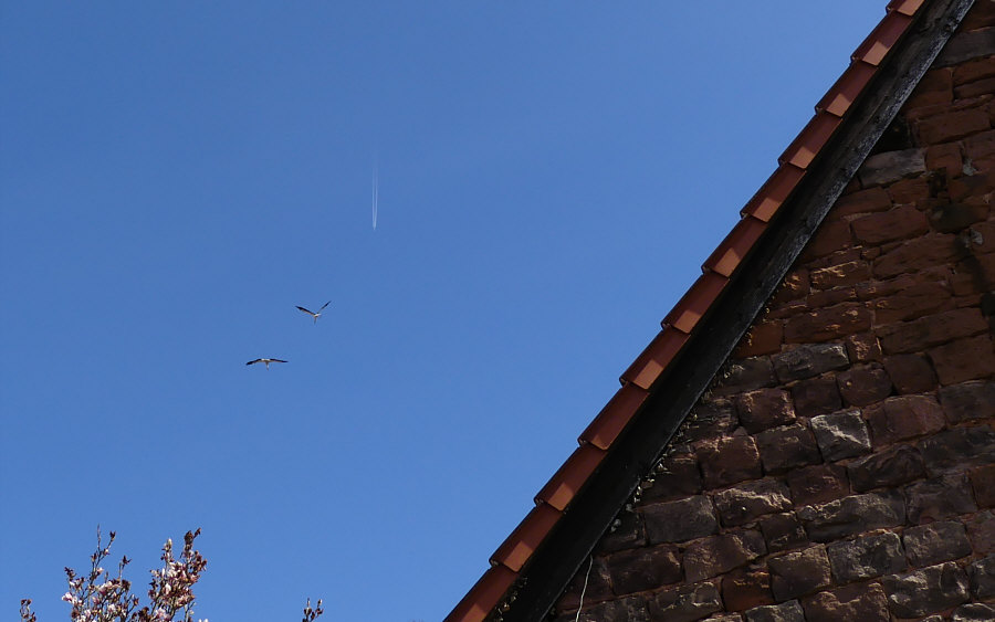 Leute ... ich muss Euch mal einen kleinen Blick hinter die Kulissen geben ... ... das waren die Kalenderblätter, die ich noch zeigen will ... 1 - Wasser fehlt 2 - macht lustig 3 - quietscht 4 - was macht die denn da oben ? 5 - so viele Knöpfe 6 - montags, dienstags, mittwochs ... jeder Tag ... 7 - ich glaub, ich zieh um 8 - ist alles kein Problem 9 - Fülle 10 - schwarz-weiß 11 - ohne Schleife 12 - erst warten, dann Freude 13 - spätromantisch 14 - entdecke die Möglichkeiten ... und das ist daraus geworden: 1 - Wasser fehlt - fehlt noch, wird ein Höhepunkt 2 - macht lustig - gezeigt - Funnys Zitronen 3 - quietscht - gezeigt - die Einklassenschule 4 - was macht die denn da oben ? - gezeigt - die Spaghetti von Petra H. 5 - so viele Knöpfe - fehlt noch, fährt bald los 6 - montags, dienstags, mittwochs ... jeder Tag ... - gezeigt - die Alltagsmenschen von Inge 7 - ich glaub, ich zieh um - gezeigt - der Stadtpark von Ina P. 8 - ist alles kein Problem - upps ... 9 - Fülle - gezeigt - die Blümchen 10 - schwarz-weiß - das kommt heute 11 - ohne Schleife - gezeigt - der Geburtstagsspaziergang 12 - erst warten, dann Freude - upps ... 13 - spätromantisch - hmm ... 14 - entdecke die Möglichkeiten - hmm hmm ... zu 13 - hmm ... ist vielleicht doch nicht so gut und recht aufwändig ... erst mal noch überlegen zu 14 - ist, glaube ich, doch nicht so gut ... zu 8 - auwei ... ich weiß nicht mehr, was ich damit gemeint hatte ... zu 12 ... auch da weiß ich nicht mehr, was ich zeigen wollte ... Tja, manches rinnt durch das Sieb der Zeit und fort ist er, der Gedankensand. Und tja ... manche Umschreibungen sind so gut, dass ich sie selbst nicht mehr verstehe ;). Ja, ich weiß, ich hätte es mir aufschreiben sollen ... aber damals war das halt alles so klar ;)). Zum heutigen Kalenderblatt ... schwarz-weiß Es gibt Tiere, die sind schwarz-weiß.. Und diese sitzen normalerweise im Nest, stehen auf der Wiese oder fliegen durch die Luft ... aber eher hoch. So wie hier: ![]() Und nicht tief und direkt um dich herum. Doch so war das in diesem Fall ... zwei Störche, die immer tiefer runter gekommen und ganz tief über den Hausdächern geflogen sind. Wir waren gerade spazieren und ich hab versucht, sie mit der Kamera einzufangen: ![]() ![]() Ich hab viel mehr Bilder gemacht ... aber die unscharfen zeige ich nicht ;). Einen alleine ... da hab ich ein paar schöne Flugbilder machen können: ![]() ![]() ![]() ![]() ![]() ![]() Der eine flog dann auf ein nahes Dach ... ![]() ... stieg dann etwas höher ... ![]() ... und blieb dort oben dann lange sitzen: ![]() Und schaute in meine Kamera (natürlich musste ich das Zoom ganz ausfahren). ![]() ![]() ![]() Und dann noch Sturmfrisur und Morgengymnastik ;). ![]() ![]() Dankeschön fürs Portrait sitzen :)). ![]() |