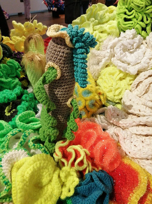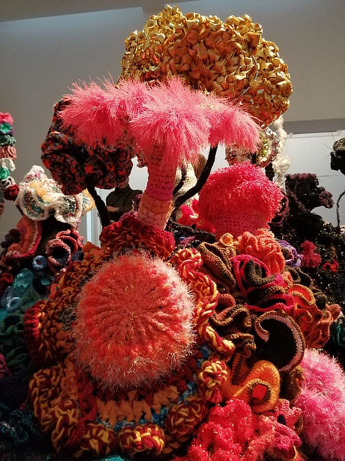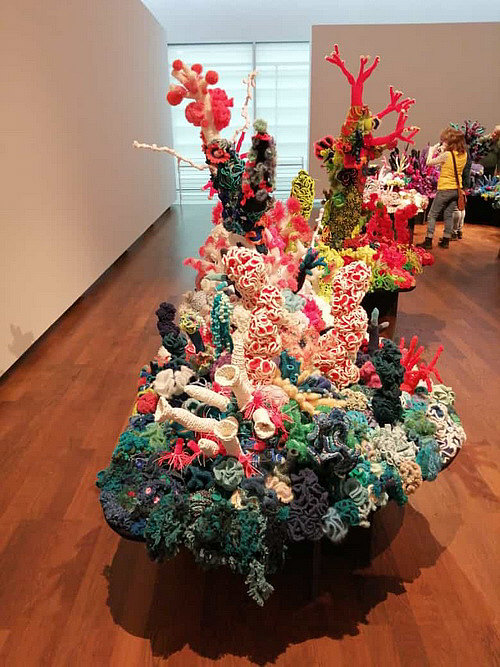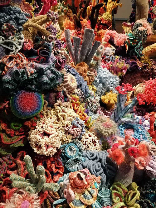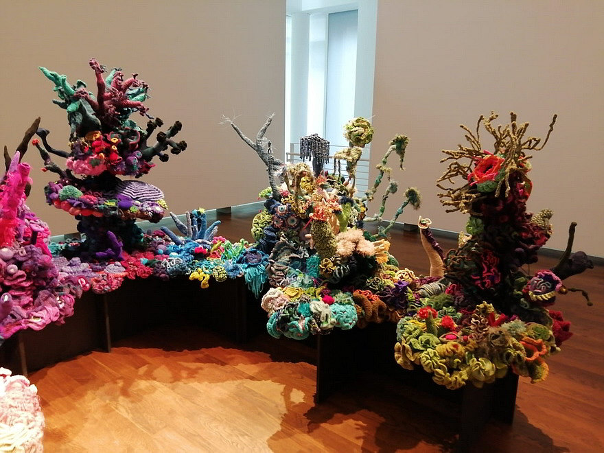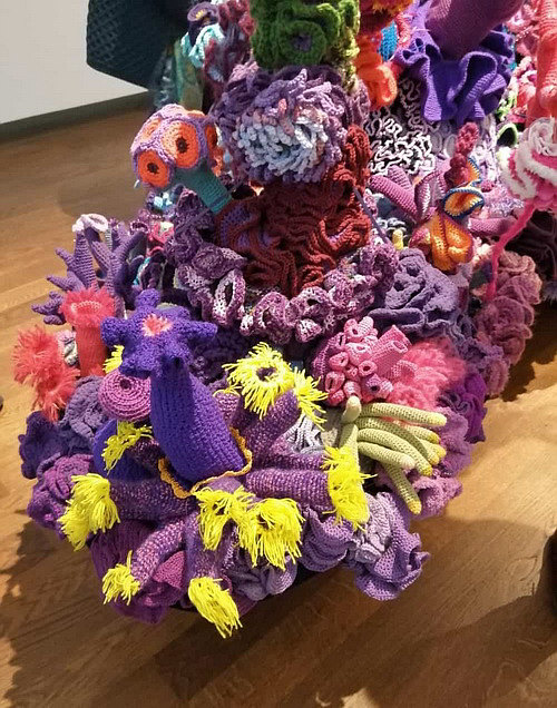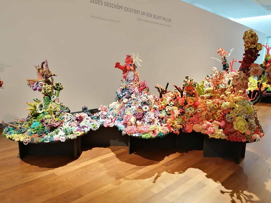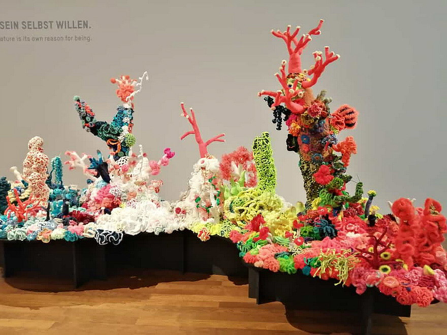 Von den Kalenderblättern, die ich noch zeigen will ... ... zeige ich heute ... Nummer 1 - Wasser fehlt Hinter dieser Umschreibung ist ein Kalenderblatt-Höhepunkt zu finden. Wir sind heute ... ![]() ... in Baden Baden. Im Museum Frieder Burda ... bei der Ausstellung ... ![]() Von der Webseite des Museums habe ich ein Teil der einleitenden Worte rüberkopiert: "Die Nesseltiere sterben. Überall kommen Korallen durch globale Erwärmung zu Tode. Die in Australien geborenen und in Kalifornien lebenden Schwester-Künstlerinnen Margaret und Christine Wertheim finden sich mit dem Verlust nicht kampflos ab, sondern begegnen ihm mit einer fabelhaften Welt, die in traditionellen handarbeitlichen Techniken entstanden ist: Ihre gehäkelten Riffe schillern und schwelgen in Farben und Formen, die vom Great Barrier Reef inspiriert sind. Nach dem Vorbild der lebendigen Riffe, denen sie nachstreben, haben die Schwestern ein kooperatives Installationswerk gestaltet, an dem über 20.000 Menschen in fünfzig Städten und Ländern mitwirkten. Deswegen der Titel "Wasser fehlt", weil diese Korallen gehäkelt sind. Ina P. war Gott sei Dank dort, so dass wir alle nun unserer Begeisterung freien Lauf lassen und atemlos staunen können: ![]() ![]() ![]() ![]() ![]() ![]() ![]() ![]() ![]() ![]() ![]() ![]() ![]() ![]() ![]() ![]() ![]() ![]() ![]() ![]() ![]() ![]() ![]() ![]() ![]() ![]() |