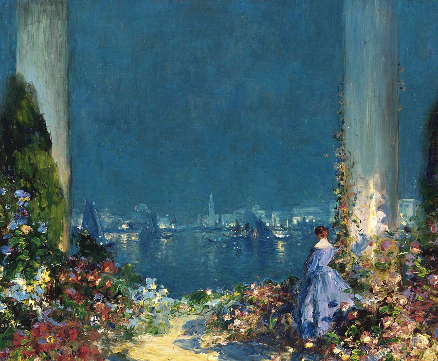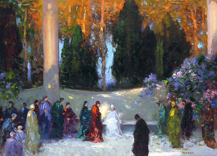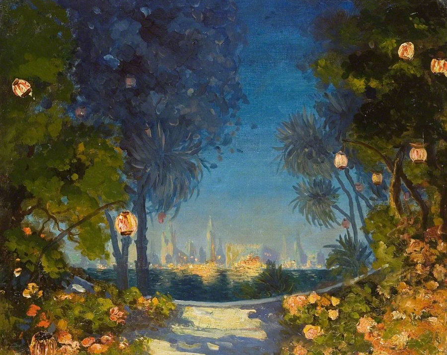 Während ich gestern schon eine Idee hatte, was ich heute hier zeigen will ... ... kamen mir Bilder dazwischen. Es gibt da eine Kunstseite, die verschwand vor 1 1/2 Jahren einfach. Ich hatte sie als Favoriten abgespeichert und nie gelöscht. In der Erwartung "ist bestimmt immer noch offline" mal draufgeklickt ... ... und ... oooh Überraschung ... die Seite ist wieder da. Ich hab dann dort mal verschiedenes angeklickt und bin bei einem Künstler hängen geblieben, der ganz besondere Lichtstimmungen in seine Abend-, Nacht- und Dienstbilder gemalt hat. Der Maler kommt aus England, heißt Thomas Edwin Mostyn und lebte von 1864 bis 1930. Ich beginne mit zwei Bildern aus Venedig: Zuerst "ein verzauberter Abend": ![]() Nun "ein Festzug", auch in Venedig: ![]() Als nächstes "die Audienz", wo auch immer ... auch hier steht die Sonne schon tief: ![]() Kommen wir zu den Lampions und "Blick über einen See auf eine Stadt": ![]() Ziemlich düster das nächste Bild, aber es heißt ja auch "Dämmerung". Ja, sehr düster, ziemlich einfarbig ... auf auf seine Weise mit viel Ausstrahlung: ![]() Thomas Edwin Mostyn hat während der späten viktorianischen Ära und im frühen 20. Jahrhundert gemalt. Er ist besonders durch seine idealistischen und romantischen Gartenszenen sowie verschiedene Porträts in Erinnerung geblieben. ![]() ![]() ![]() Deine Gedanken zu diesen Bildern ? |