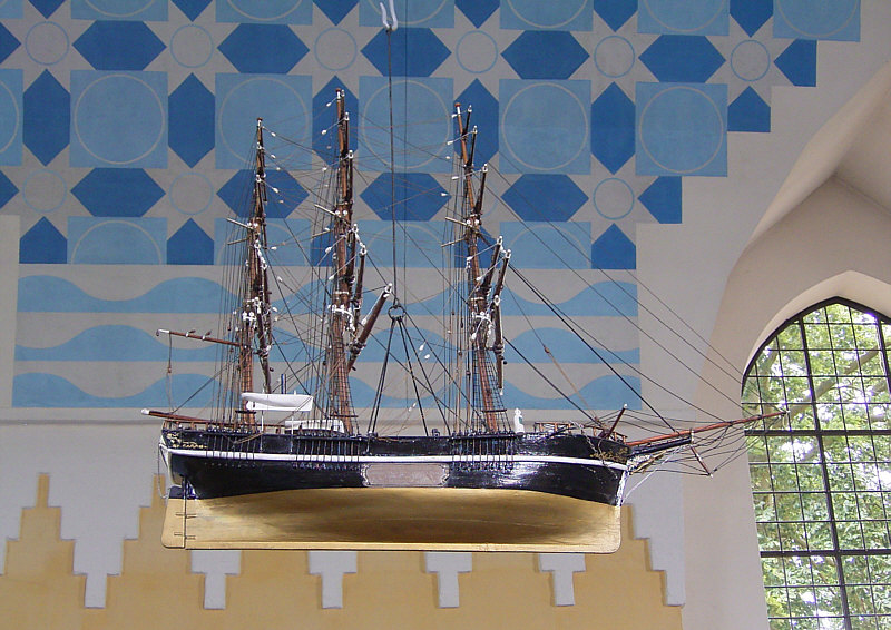 Heute: wie sehr ein Detail doch die Stimmung ändern kann und warum Retuschieren manchmal sehr viel Sinn macht und wie etwas schlechtes doch sein gutes hat Ich löse ausnahmsweise heute schon die Sonntagskirche auf. Hier waren wir gestern: ![]() Dieses Bild ist retuschiert. Ich hätte es unretuschiert gar nicht als Sonntagskirche zeigen können ... denn: ![]() Da bekommen die Kerzen gleich eine ganz andere Bedeutung. Da aber jedes Schlechte sein Gutes hat ... ohne diese Beerdigung wäre wahrscheinlich die Kirche gar nicht geöffnet gewesen und wir hätten sie nicht sehen können. Dabei ist sie sehr sehenswert. Wie fing denn das alles an ? vor langer Zeit gab es hier mal eine Holzkirche. im 12. Jahrhundert ... wurde diese durch eine Steinkirche ersetzt. Genaueres weiß man nicht, weil die Kirchenarchive durch einen großen Brand vernichtet worden sind. Der Brand von Hobo ... einer Stadt im Norden Dänemarks. Der große Brand und der Krieg gegen England hinterließen Spuren und so fehlte das Geld für den Unterhalt der kleinen Steinkirche. Und so war deren Zustand 1846 so schlecht, dass die Kirche einzustürzen drohte und deswegen abgerissen werden musste. immerhin schon 6 Jahre später ... ... wurde dann die neue Kirche, in der wir drin waren, eingeweiht. Eine Kirche, die wie eine feudale Burg aussieht: ![]() ![]() ![]() Die dänische Wikipedia schreibt von einer "in vielerlei Hinsicht untraditioneller neue Kirche". Denn unter anderem zeigt der Kirchturm nach Osten ... weil er so von der Stadt aus besser zu sehen ist. Was auch immer "von der Stadt aus" bedeutet. Gehn wir nochmal rein ... und schauen zur Decke ... ![]() ... ja, wahrlich unkonventionell. Upps ... scrollt da mal ein bißchen hoch und runter und betrachtet dabei das Muster ... das rockt ;). Wir schauen weiter und entdecken, dass jeder Abschluss einer Sitzreihe individuell gestaltet ist: ![]() ![]() Wir schauen uns die Kanzel genauer an ... ![]() ... und den Altarbereich: ![]() Unten ist der Altar mit dem mystischen Lamm bestückt. Das Kreuz trägt die Buchstaben IHS und an seinen vier Enden die vier Symbole der Evangelisten. Auf dem Mosaik oben ist der thronende Christus zu sehen. Der Blick vom Altar aus nach hinten: ![]() Und zu guter Letzt noch das Votivschiff: ![]() Was bedeuten eigentlich Schiffsmodelle in Kirchen ? Diese sind Schenkungen von Gilden oder Privatpersonen. Viele europäische Kirchen in Küstennähe besitzen solche Modelle. Sie wurden in katholischen Ländern als Votiv- und Dankesgaben für Rettung aus Seenot gestiftet und werden darum auch Votivschiffe genannt. In den protestantisch geprägten Nord- und Ostseeländern überwiegt die Bedeutung als berufsständische Repräsentation. Die größte Dichte an historischen Schiffsmodellen in Kirchen weist Dänemark mit etwa 1400 Exemplaren auf. Sie werden auf Dänisch "kirkeskib", übersetzt "Kirchenschiff" genannt. |