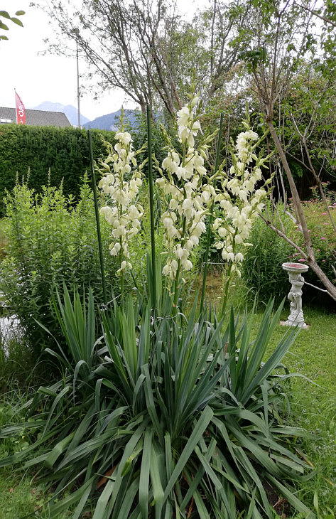 Bei Liane blüht im Garten die Yucca-Palmlilie: