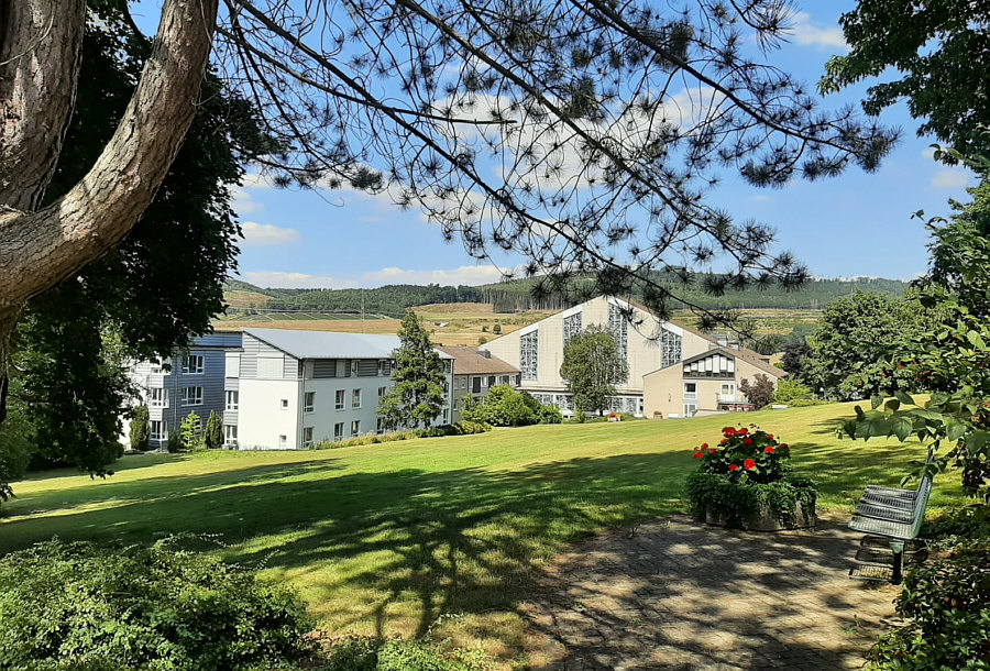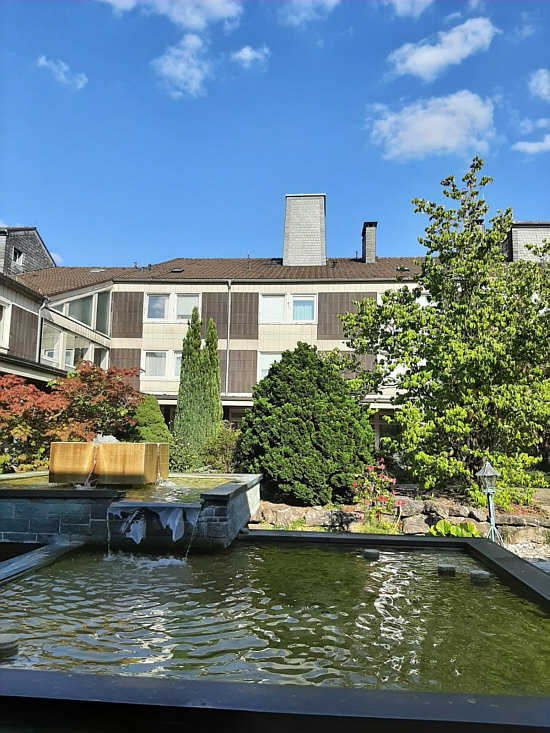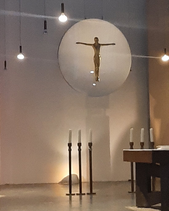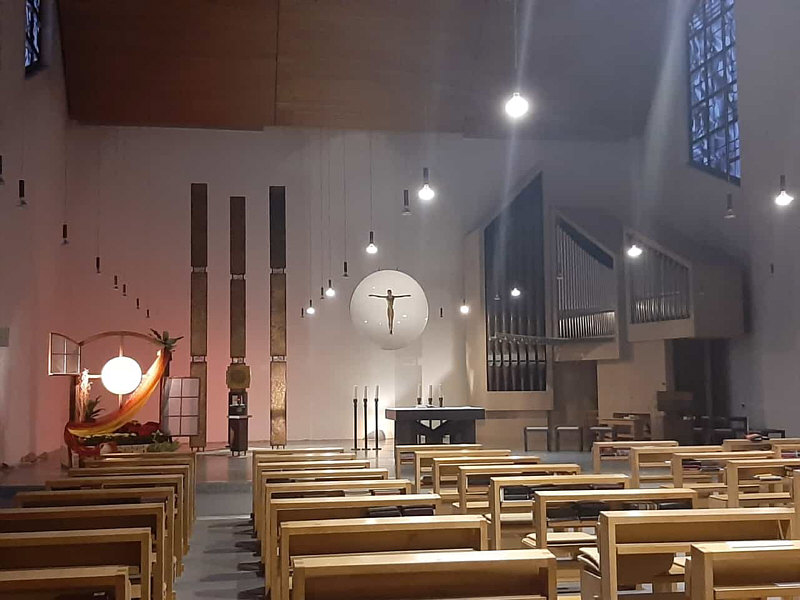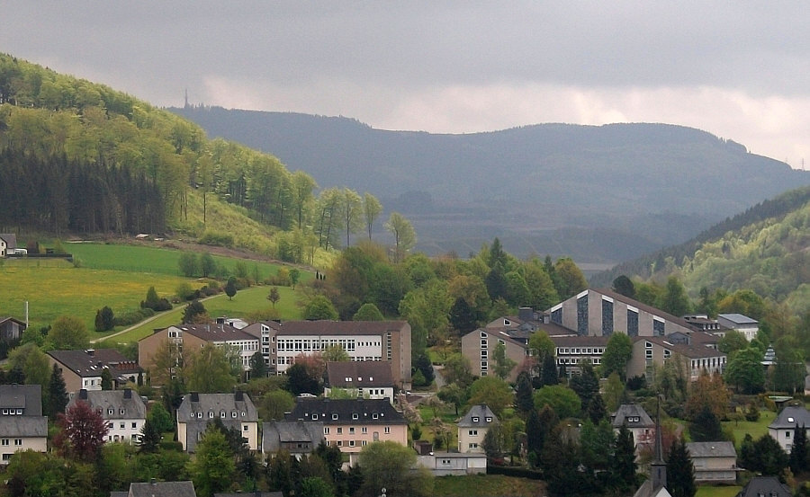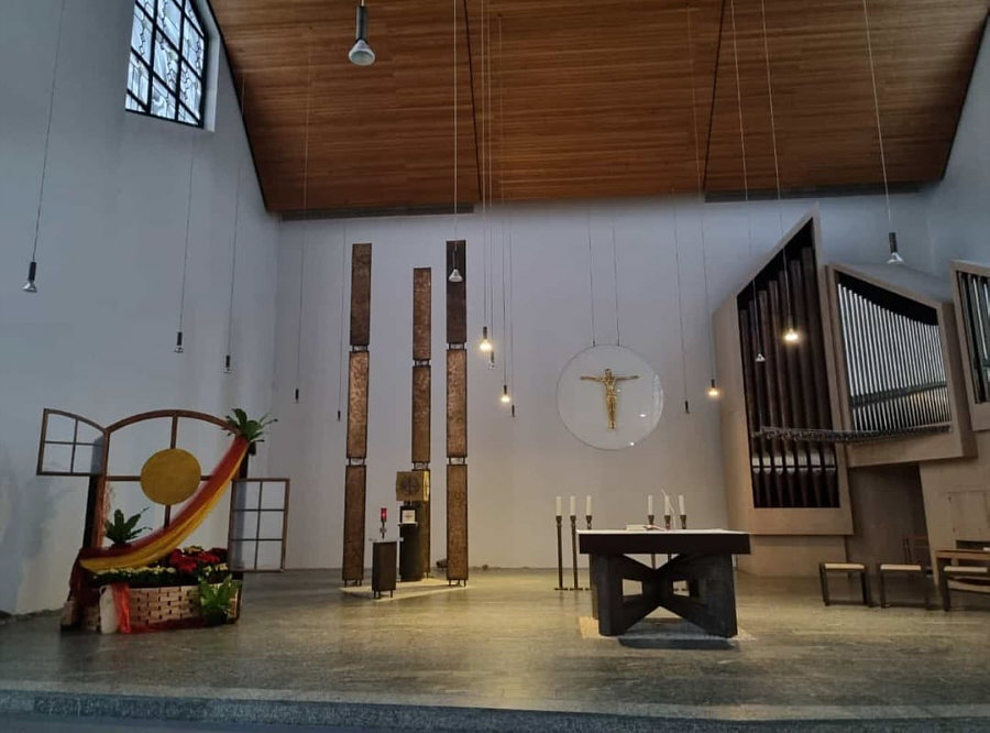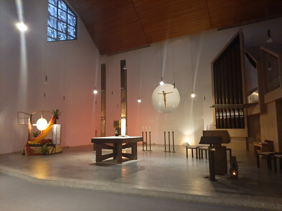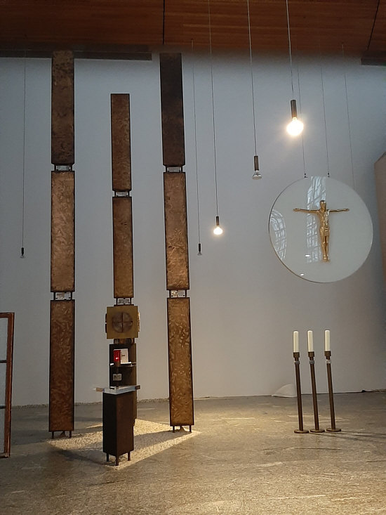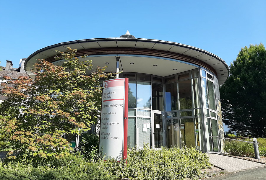 Heute habe ich eine ziemlich überraschende Kirchenauflösung für Euch. Am 21. August waren wir hier ... ![]() ... und vielen gefiel diese moderne Kirche sehr gut. Wer hätte gedacht ... ![]() ... das man erst durch diesen Eingang muss, um überhaupt auf das Gelände zu kommen, wo die Kirche drauf steht. Wir sind ... bzw. Frauke war dort und hat uns die Bilder mitgebracht ... im Bergkloster Bestwig. Dieses Kloster ist das Mutterhaus der europäischen Provinz der Schwestern der hl. Maria Magdalena Postel. Bestwig liegt im Hochsauerlandkreis. Das Kloster wurde zwischen 1965 und 1968 erbaut, ist also ein relativ neues Kloster. Bei unserer Sonntagskirche (sie nennt sich Dreifaltigkeitskirche) war die Kirche gerade ... ![]() ... schön beleuchtet ... ![]() ... aber ich habe auch ein Bild mit weniger Licht ... ![]() ... und die drei Stelen ... ![]() ... kann ich extra zeigen. Die Kirche wird für den Gottesdienst, aber auch für Veranstaltungen genutzt. Sie fällt von außen gar nicht so sehr als Kirche auf ... ![]() ... sie ist in dem Gebäude mit den langen Fenstern zu finden. Ein Blick von weiter weg: ![]() Foto: Stefan Didam Hier sieht man das Gebäude von oben, man kann sehr gut den Eingang und den Kirchenteil erkennen. Wem diese Kirche jetzt nicht so gut gefällt oder wer Kirchen generell nicht mag, der spaziert einfach ein bißchen durch den Innenhof. ![]() ![]() Verschiedene Leser hatten nach dem, was da links im Bild ... ![]() ... so schön leuchtet, gefragt ... das kann ich Euch dank Frauke von nahem zeigen: ![]() Von einer Ordensschwester nach Ikebana (japanische Kunst des Blumenarrangierens) gestaltet. |