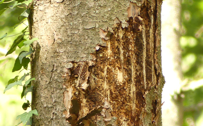 Ein Baum im Wald ... ![]() ... was ist da passiert ... wer hat ihn so ramponiert ? Vorgestern fotografiert ... da sah ich beim Spaziergang im Wald eine Bewegung an einem Baum. Das musste ich mir mal genauer anschauen. ![]() Ein Schwarzspecht ist es, der da die Rinde malträtiert. Und Anlauf nehmen ... ![]() ... und immer schön feste drauf. ![]() Und auch mal nachschauen ... ![]() ... was unter der Rinde ist: ![]() Gottseidank kam ich auf die Idee, den Specht mal zu filmen: |