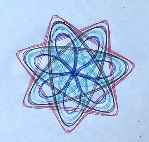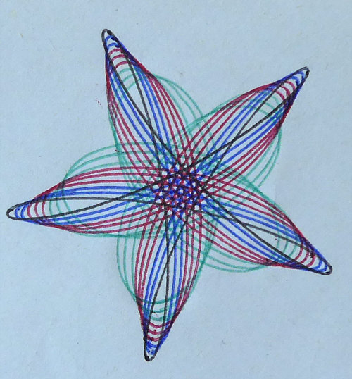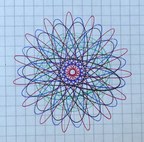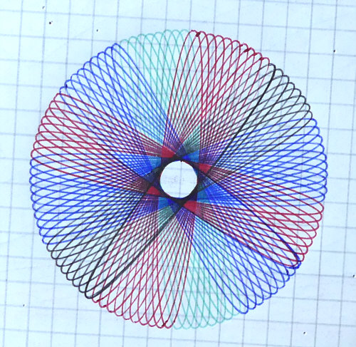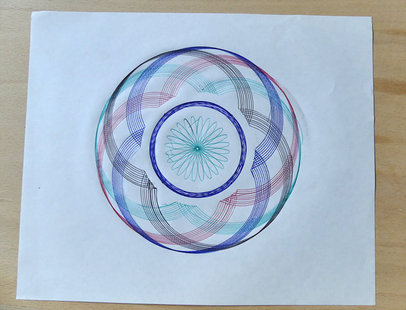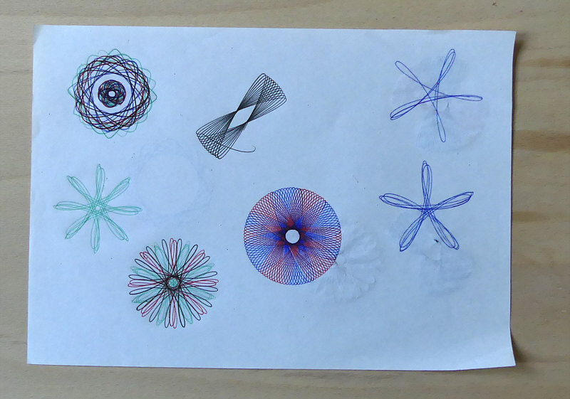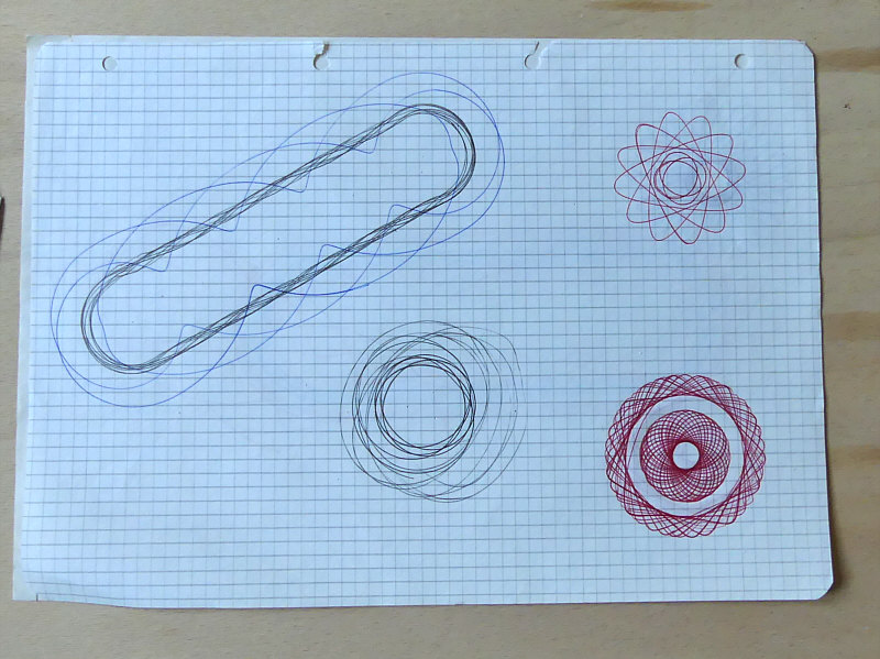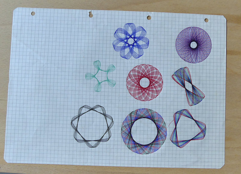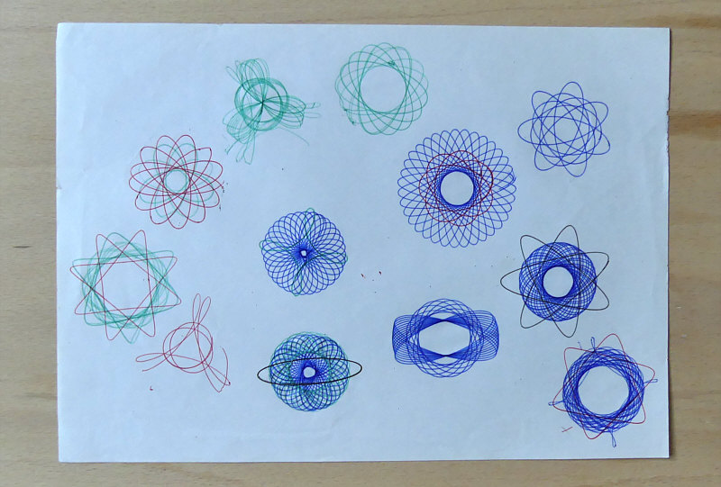Im berühmten Keller ... wo dies und das und jenes liegt ... ... habe ich auch das gefunden: ![]() Ziemlich zerfleddert ... ![]() ... und in dem Plastikdingens ... ![]() ... ist nix mehr drin ... weil alle Räder lose rumfliegen ... ![]() ... hey, das könnte fast ein Bild von Kandinsky sein ;). Die Räder sind nicht mehr komplett, wie es aussieht ... aber das Anleitungsheft ist noch da: ![]() ... da kann man sehen, wie das damals gemacht wurde. Den Stift in ein kleines Loch stecken und dann am Rande des Zahnrades entlang fahren. So entstehen kleine Wunderwerke ... ![]() ... und überall steht genau dabei, was man wie machen muss. Manches ist einfacher, manches komplizierter, manches geht schneller, manches dauert länger. Meistens malt man mit dem Stift in einer kleinen Scheibe innerhalb des großen Kreises ... aber es gibt auch Ausnahmen: ![]() Und dann das ... in der Packung liegt auch ein Stoß Blätter ... ![]() ... wie ich gestern erst gesehen habe. Und ich glaubs fast nicht ... dort sind alle gezeichneten Werke zu finden. Weiß nicht, ob die alle von mir waren ... glaub eher nicht, denn auch meine Mama hat gerne mit dem Spirograph gemalt. Auf den Blättern ist alles mögliche zu finden ... von den ersten Anfängen ... ![]() ![]() ... bis zu immer besser werdenden Zeichenobjekten. ![]() Wir haben richtig viel gemalt ... das war für eine kurze Zeit der Freizeithit gewesen. ![]() ![]() ![]() Auf dem Bild sind auch Haken zu sehen ... da haben wir dann eine Zeichnung nach dem Vorlagenheft nachgemalt und es scheint geklappt zu haben. Abgehakt also ;). ![]() Vorder- und Rückseiten wurden bemalt ... ![]() ... und ein paar einzelne Mandalas (oder wie man das nennen mag) zeige ich extra: ![]() ![]() ![]() ![]() ![]() ![]() Eine der größten Zeichnungen ist der Kreis rechts im Vorlagenheft ... ![]() ... und das ist die Anleitung dazu: ![]() ![]() Und ... kaum zu glauben ... auch dieses Kunstwerk findet man auf den Blättern: ![]() Lang lang ists her ... |
