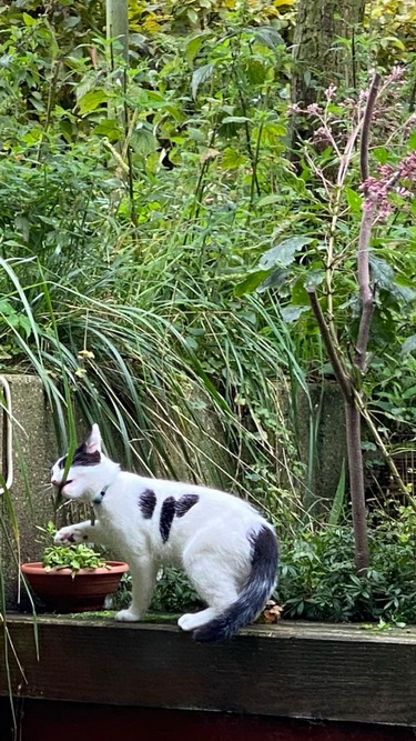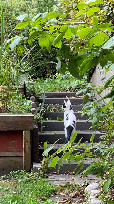 Meinen Garten findet er sehr spannend, da ist immer was los.