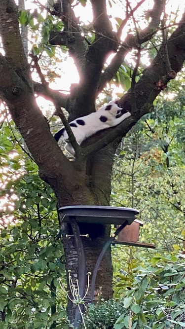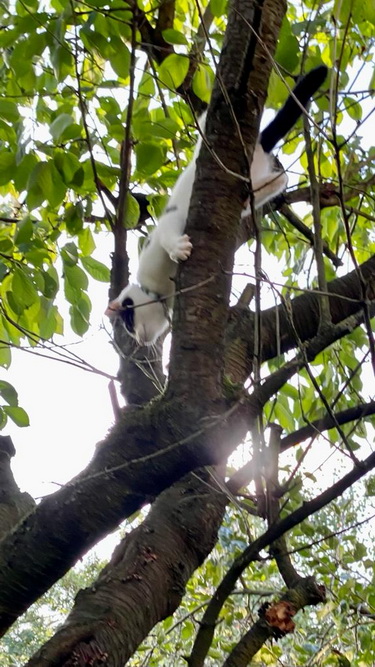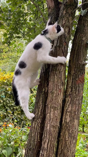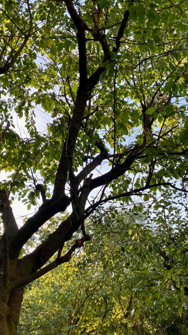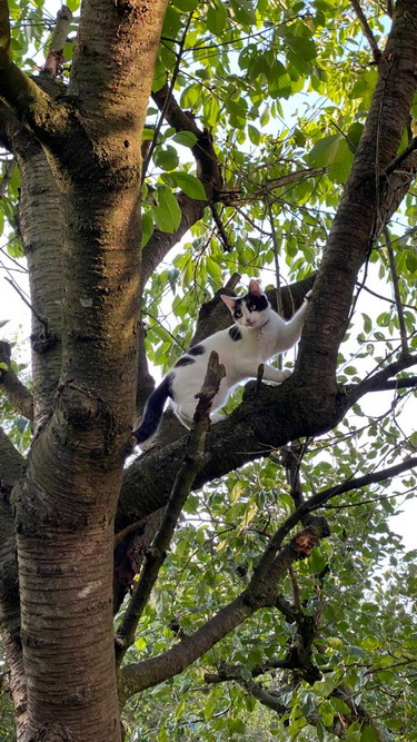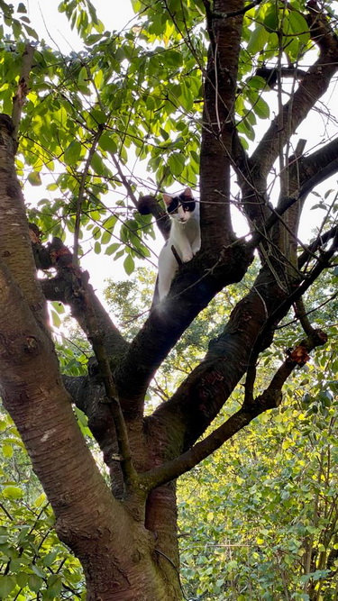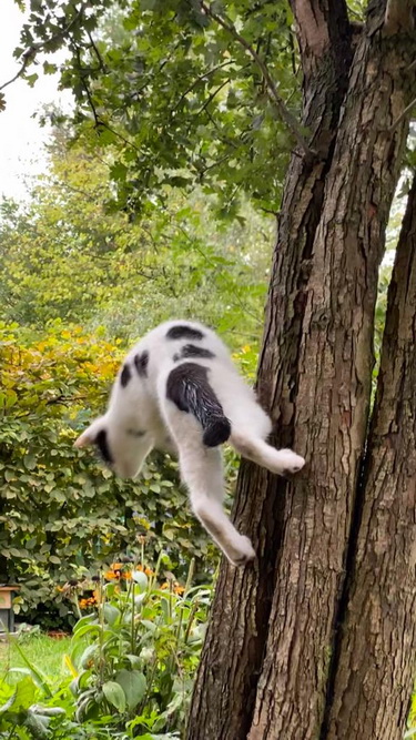 Der kleine Feger wird immer mutiger ... heute mal den Kirschbaum