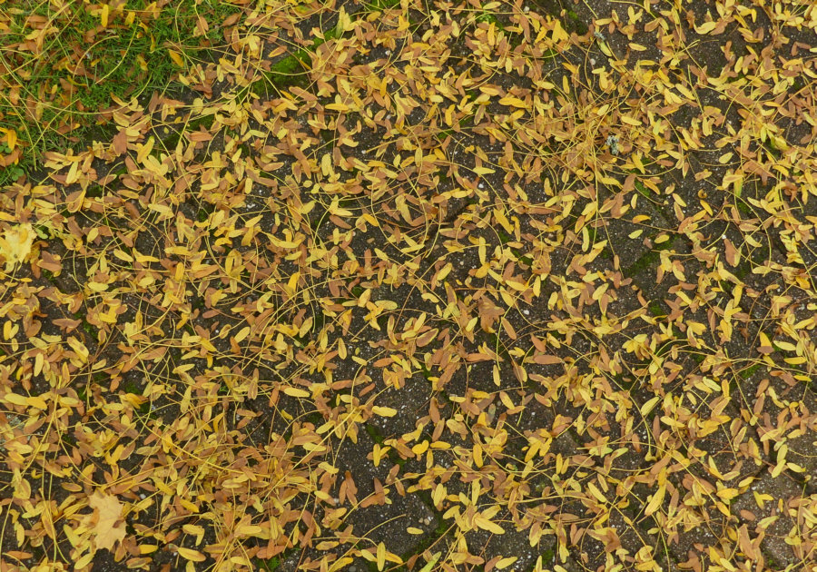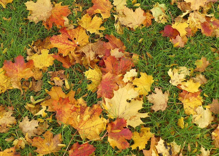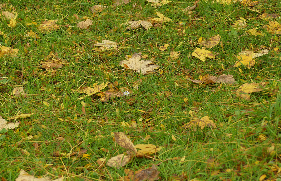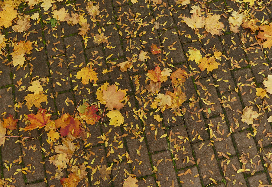 Die Haustüre öffnen. Die Treppe runter gehen. Ins Auto einsteigen. Losfahren. 3,6 km fahren. Langsam werden. Auto parken. Aussteigen. Zwei Meter laufen. Und schon die ersten Bilder machen. Genauso ist das vorgestern passiert. Direkt neben dem Parkplatz fand ich herbstliche Strukturen. ![]() Pflastersteine, grüne Fugen und darauf Blätter und die Flügel der Früchte der Ahorne, die da stehen. Ja doch, es heißt nicht Ahörner, sondern Ahorne, wie ich gerade gelesen habe. Mich hat fasziniert, dass man nicht nur Blätter sieht, sondern auch diese Flügel. Botanisch korrekt: "es werden Spaltfrüchte gebildet, die als zwei geflügelte Nussfrüchte (Samara) abfallen. Die Frucht führt durch ihre spezielle aerodynamische Form (Monopteros) beim Herunterfallen zu Autorotation, dieses bewirkt ein langsameres Absinken der Samen und eine großflächige Verteilung der Diasporen durch den Wind." Ja, auch ich beginne mit der Autorotation, wenn ich falle, aber ich werde nicht langsamer dabei ;)). Sorry ... ich wollte und sollte ja ernst bleiben. Es geht schließlich um die Bilder ... ![]() ... und um diese warmtönigen Strukturen. Mal mit mehr Blättern ... mal mit weniger ... ![]() ... und mal sind fast nur Flügel auf dem Bild zu sehen. Während auf dem Rasen ... ![]() ... fast nur Blätter liegen bzw. die Flügel nicht so auffallen, weil sie nicht oben drauf liegen, sondern zwischen die Halme sinken. Man stelle sich vor ... beim Fotografieren des obigen Bildes hätte die Sonne geschienen. Das wäre ein Leuchten gewesen ! Oder bei diesem: ![]() Wir schauen die ganze Zeit auf den Boden ... ![]() ... was ja im Sinne der Trittsicherheit gut ist ... aber die Vielfalt der Umgebung bleibt da außen vor. Denn es gäbe ... ![]() ... eine Mauer, Bänke, ein Gebäude, einen Baum (vermutlich Ahorn ;)) ) und ein Hoppelgerät zu sehen. Und noch was, was auf dem großen Bild zwar vorhanden ist, man aber nicht sieht. Nicht, wenn man nicht weiß, dass es da ist. Das ist halt der Vorteil des "Persönlichanwesendseins" ... man sieht mehr. Das man ja dann aber fotografieren kann ... und zwar so ... ![]() ... dass es andere auch sehen. Nicht ? Doch ! Nicht ? Nicht doch ... ... okay, ich gehe noch etwas näher ran: ![]() Wie sehr doch so ein Rahmen bei der Suche hilft ... ![]() ... nach dem, was da inmitten all der herbstlichen Strukturen zu finden ist. ![]() Und dieses kleine Wunder ist nun etwas, das wirklich jeder sehen kann. Auch der mit Stock, Gehwägelchen oder Rollstuhl, denn wir sind ja nur zum Auto und dann wenige Schritte gegangen. Okay, für das nächste Foto muss man sich bücken können ... ![]() ... es sei denn, man sitzt an Laptop, PC oder Handy :). |