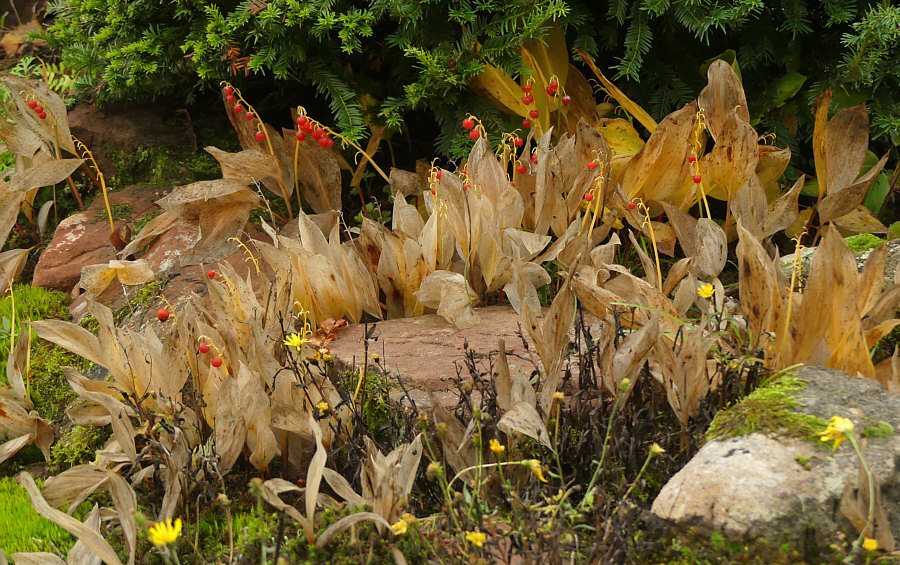 Im Mai blühten hier die Maiglöckchen ... das Laub ist nun braun und