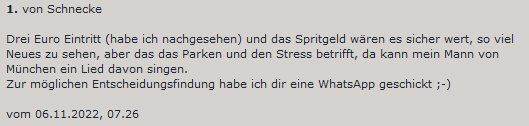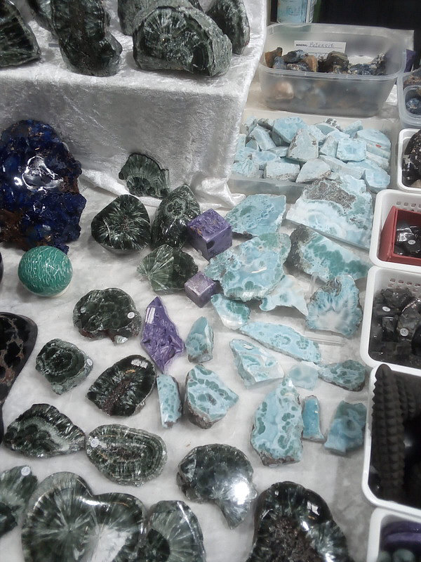 Ich hatte ja letztes Wochenende (im Tagebuch) überlegt, ob ich zu einer Mineralien-, Fossilien-, Schmuck- und Edelsteinbörse fahren soll oder nicht. Ich hatte mich dann dagegen entschieden ... ... und ... ach ... ich brauche ja gar nicht hin, weil ein paar Wochen zuvor Schnecke auf einer Mineralienbörse war. Was sie auch im Tagebuch kommentiert hat: ![]() Die Entscheidungsfindung per Whatsapp sah dann so aus, dass mir Schnecke Bilder von ihrem Besuch der Messe geschickt hat. Die waren jetzt zwar nicht ausschlaggebend, dass ich selbst nicht gefahren bin, aber so kann ich und ihr auch beides haben. Schön gemütlich vor dem PC sitzen, nicht los zu müssen und dennoch sehen, was es dort so zu kaufen gibt. Das ist das tolle am Internet immer wieder, dass man Dinge sehen kann, die man sonst aus irgendwelchen Gründen nie in natura gesehen hat. Wie z.B. eine Mineralienmesse: ![]() ![]() ![]() ![]() ![]() ![]() ![]() ![]() ![]() ![]() ![]() ![]() ![]() ![]() ![]() ![]() |
