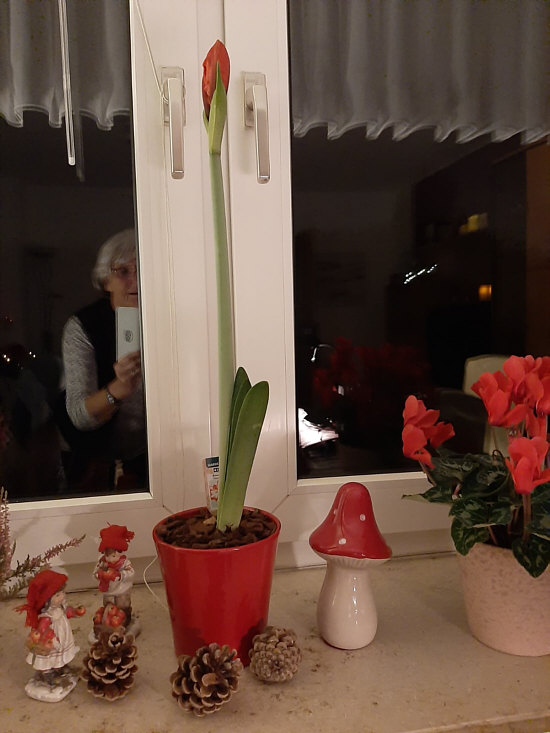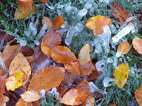 ![]() Ich beginne auch heute wieder mit aktuellen Bildern ... ... und so fragt Gerda F. ... ![]() ... wie hoch denn ihre Amaryllis noch wachsen will. Und ich freu mich sehr, mal wieder eine Seelenfärblerin im Bild vorstellen zu dürfen: ![]() ;)). ~~**~~ Apropos Seelenfärblerbilder ... Karens Sohn wohnt ca. 50 km von Birgit W. entfernt. Karen und Carsten sind öfter mal eine Woche bei ihrem Sohn. Und in diesem Jahr hats dann auch mal geklappt, dass die beiden sich mit Birgit und Jörg getroffen haben: ![]() Das Schild im Hintergrund bleibt allerdings ein Rätsel: ![]() Nee ... da komm ich nicht dahinter ;). ~~**~~ Da ist das nächste Bild schon eindeutiger in der Aussage ... ![]() ... ich glaube, der sagt uns gerade, was er von der WM in Katar hält ;)). O-Ton Birgit: "Ich war bei der Töpferei in Langerwehe, wo du gaaanz vieele Lichterhäuser kaufen kannst, hab aber nicht gefragt ob ich Bilder zum Veröffentlichen machen darf, wäre auch schlecht weil Preise überall drauf. Aber für den hab ich gefragt zum Fotografieren - stell dir vor, es fiel mir schwer, ihn nicht einzuladen ins Auto und im Vorgarten aufzustellen". ~~**~~ So eine Art Stinkefinger zeigt uns auch das folgende Schild, das Ina P. ganz aktuell fotografiert ... ![]() ... man beachte das Kleingedruckte ... ~~**~~ Kommen wir zu etwas Schönerem ... dieser große Eiszapfen bei Mira I ... ![]() ... der sich durch Tauwasser gebildet hat und tropft und tropft ... und das auf den Rasen ... ![]() ... und dort entsteht dadurch eine kleine Wunderwelt: ![]() ![]() ![]() ~~**~~ Zum Schluss zeigt uns Sonja-S wie schön doch der Blätter Zier ist, wenn es Minusgrade gibt, zeigt uns Sonja-S.: ![]() ![]() ~~**~~ Kalt, Finger, Blume, Blätter, Schild, Begegnung ... Seelenfärbler-Vielfalt :)). |