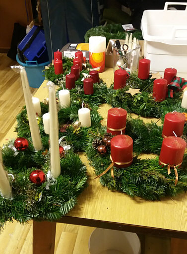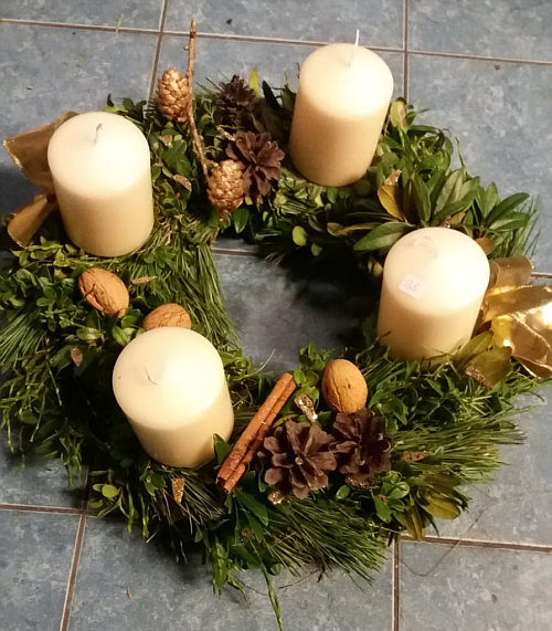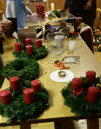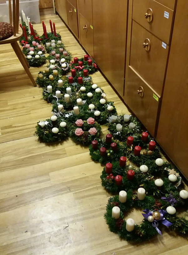 Gestern ... ![]() ![]() ... da waren wir in Brixen gewesen. Jedes Jahr bastelt eine Gruppe der Pfarrgemeinde Brixen Adventskränze. So geht das dann weiter: ![]() ![]() Sr. Maria sagt dazu: "Dabei ist es ihnen wichtig dass in die Familien einfach das Zeichen des Advents, des Wartens - der Wegbereitung hineinkommt. Die werden dann auch verkauft, wobei solche Menschen berücksichtigt werden, die es sich nicht leisten können die Adventszeichen zu kaufen. Auch die erhalten etwas, niemand geht leer aus. Da bekommt die eine oder andere Person einen gegen eine freiwillige Spende, auch wenn sie nur gering ist, oder eventuell geschenkt. Die Frauen sind da sehr aufmerksam und nachsichtig. Es wird auf den Segen von Oben vertraut. So etwas empfinde ich eine wunderschöne Aktion. Das ist Advent !" Ich zeige mal eine Auswahl der Adventskränze: ![]() ![]() ![]() ![]() Zum Schluss steht der ganze Fußboden voller Adventskränze: ![]() Es werden auch Gestecke gebastelt ... ![]() ... hier sind Kerzen drauf, die von Sr. Hanna selbst gegossen wurden. Schlusssatz von Sr. Maria gestern Abend um 21.55 Uhr: "Soeben bekam ich die Nachricht ... diese Frauen haben 170 verschiedene Kränze gemacht und keiner ist mehr übrig :))." |