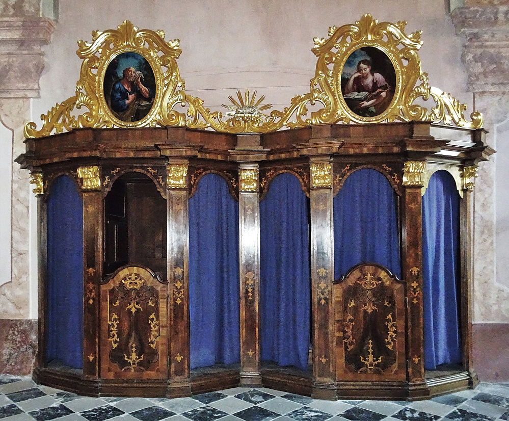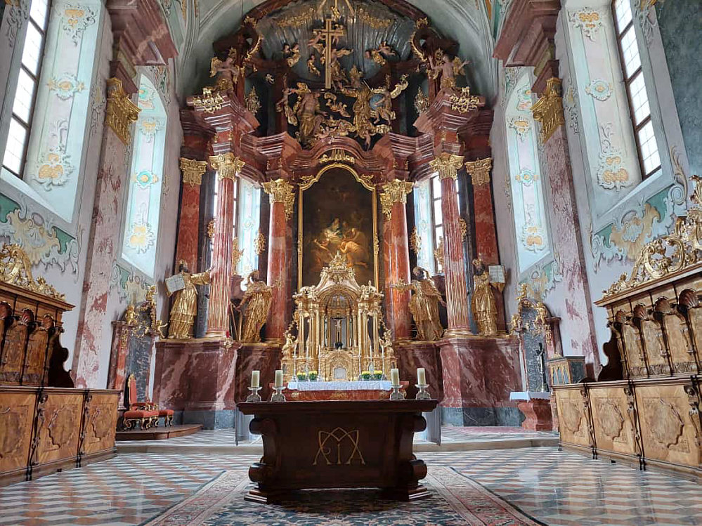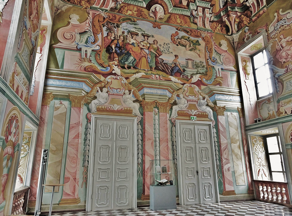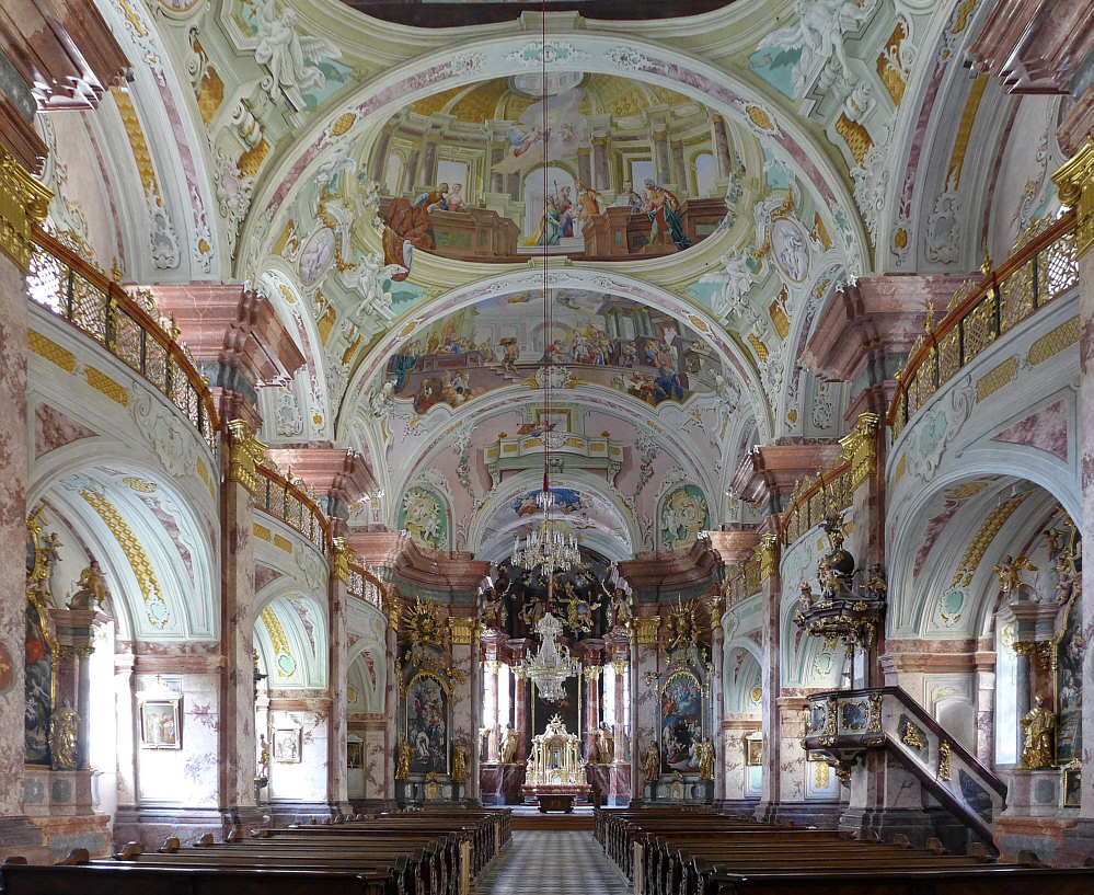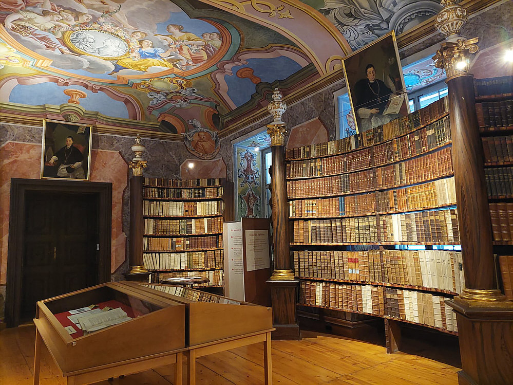 Das verbindet sich heute wunderbar ... zum einen, dass ich nochmal Seelenfärbler-Bilder zeigen will und zum anderen, dass es gestern keine klassische Sonntagskirche gab. Und so kommt eines zum anderen ... denn Lina war im Stift Rein in der Steiermark in der Nähe von Graz. Und sie hat uns Bilder mitgebracht (die ich teilweise mit Wikipedia-Bildern ergänze). ![]() Stift Rein ist das älteste bestehende Zistersienserstift der Welt. ![]() Eine ganz besondere Rolle spielt dabei die ursprünglich romanische Stiftskirche, die später barockisiert wurde. ![]() Außen an der Fassade begrüßt uns der heilige Bernhard von Clairvaux: ![]() Und das da ... ebenfalls außen an der Fassade ... ![]() ... ist ein "Hornwerk". Das Hornwerk ist ein mechanisches Orgelinstrument. Es bestand in seiner ursprünglichen Form nur aus Windkasten, Blasebalg und Pfeifen, die bei Betätigung des Blasebalges einen vielfach verstärkten Dreiklang erzeugten. Im Mittelalter wurden solche Instrumente in die Befestigungsanlagen von Städten und Klöstern in spezielle Horntürme eingebaut. Sie erfüllten einer Sirene vergleichbare Signalfunktionen, indem sie z. B. der Bevölkerung akustisch Beginn und Ende des Arbeitstages anzeigten. Bevor wir jetzt reingehen ... die Bitte, nicht abzuhauen, sondern diese Kunst einfach auszuhalten ... denn wir gehen ja noch in die Bibliothek und die muss man auch gesehen haben ... doch zuerst in die Kirche. Noch eine Bemerkung ... das alles ist "kein" Marmor ... das sind Malereien oder ganz normaler Stuckmarmor, also einfach nur Putz. ![]() Ganz egal, ob man sowas mag oder nicht ... es ist beeindruckend, was man hier sehen kann. Alleine diese Deckenmalereien ... ![]() Das hier ... ![]() ... ist ein Bild von vielen ... alleine dieses eine Bild ist ein ganz großes Kunstwerk. Das dazu noch an die Decke gemalt wurde. Ein paar Details ... der Altar ... ![]() ... die Kanzel ... ![]() ... die Orgel ... ![]() ... und noch eine eher seitliche Betrachtungsposition, die einen guten Raumeindruck zeigt: ![]() Etwas, das man in dieser Erhaltung und Gestaltung selten sieht ... der barocke Beichtstuhl: ![]() Es gibt übrigens vier Seitenkapellen mit jeweils eigenem Altar, die es alle wert wären, gezeigt zu werden. Okay, das Chorgestühl muss ich aber noch zeigen: ![]() Die Marienkapelle diente früher als alte Sakristei und seit der Renovierung 1973 als Kapitelsaal und Winterkirche (mit Fußbodenheizung). Die reichen Dekorationen aus Stuck an der Gewölbedecke wurden 1682 vermutlich von Alexander Serenio gestaltet. ![]() Wir gehen nun durch die Äbtegalerie im südlichen Kreuzgang ... ![]() ... und werfen noch einen kurzen Blick in den "Huldigungssaal": ![]() Das ist alles Scheinarchitektur ... alles nur gemalt. Die Bibliothek heben wir uns bis zum Schluss auf ... ![]() ![]() Ist schon der Wahnsinn ... dass muss man mal gesehen haben. Wenn nicht live, dann virtuell im Kalenderblatt :)). Es gibt einen ganz tollen Wikipedia-Eintrag zum Nachlesen: Stift Rein. Deine Gedanken zum Stift Rein ? |