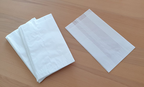 Die Tüten werden spitz zugeschnitten und vielleicht