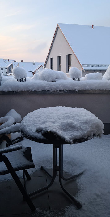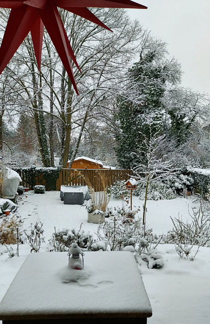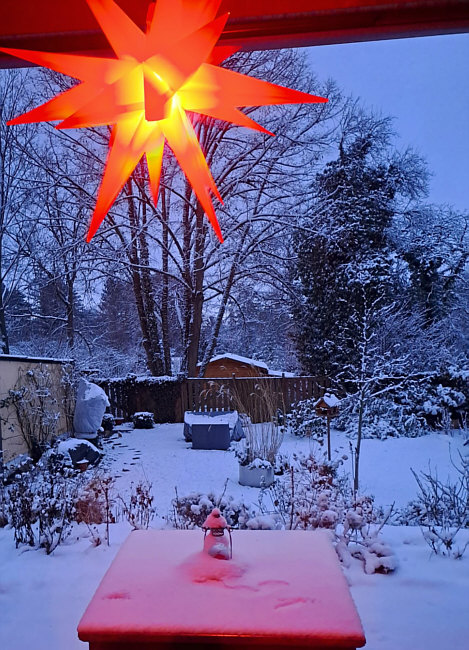 Seelenfärbler-Winter Im WhatsApp-Status von einigen Seelenfärblern waren schöne Winterbilder zu finden ... ... da hab ich glatt mal "bitte" gemacht und gefragt, ob ich die für ein spontanes Winter-Kalenderblatt bekomme. Und genau diese Bilder zeige ich heute. Es wird eine zweite Winter-Folge geben ... für diese können dann alle, die heute nicht dabei sind, mir dann per Mail (an anghy@t-online.de) jeweils ein aktuelles Bild mit 1-2 Zeilen Text schicken. DagmarPetra Dagmar sagt, sie wäre zu Besuch bei ihrer "Stammkneipe" gewesen und als sie nach Hause fuhr, sah die Welt auf einmal so aus: ![]() ![]() Bernadette Schnee im Rhein-Main-Gebiet gibts ja wirklich nicht alle Tage: ![]() Chrissy27 Auch im ansonsten sonnenverwöhnten Bad Dürkheim liegen 16 Zentimeter Schnee: ![]() ![]() Carmen R. Tagsüber war es trüb und hat geschneit ... und dann abends dieser Sonnenuntergang: ![]() Hilde Auch bei Hilde hieß es "Überraschung am Samstag Morgen", denn der Garten ganz in weiß ist ein seltener Anblick: ![]() Petra H. Petras Enkel hat ihr einen Schneemann aufs Fensterbrett gebaut: ![]() _gerlinde Am Nachmittag zuvor noch alles vom Schnee befreit und dann noch mal 20 Zentimeter Neuschnee: ![]() ![]() Ilse Ilse hat eine Eberesche mit roten Beeren und Amsel fotografiert: ![]() Brigida Finn hat sich entschieden, die Spur eines Quads zu nutzen: ![]() Ina P. Ein Bild von einem Spaziergang durchs Schuttertal: ![]() Kerstin Ein Bild aus Inzell, Landkreis Traunstein, in Bayern: ![]() Jutta aus Bayern Juttas Eiche, die lt. Baumpfleger ca. 150 Jahre alt ist: ![]() Christine b Ganz viel Schnee und sonnenbeschienene Winterwege gibts bei Christine: ![]() ![]() Mira Der Schnee macht sogar vor Miras Balkon nicht halt: ![]() Sywe Blick in den Garten bei Tag und am Abend: ![]() ![]() Monique Dank dem Hund ihrer Tochter ist Monique mal ungewohnte Wege am Riedsee gegangen und hat dabei diese Brücke entdeckt: ![]() Seelenfärbler-Winter ... so wunderbar vielfältig. Und was ganz toll ist ... das sind alles ganz aktuelle Bilder. So dass sich jeder ein Bild machen kann, wie es bei den einzelnen Seelenfärblerinnen grad aussieht :). |