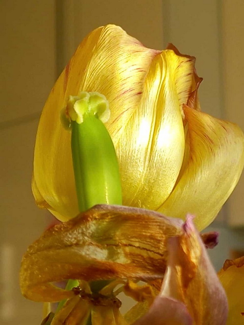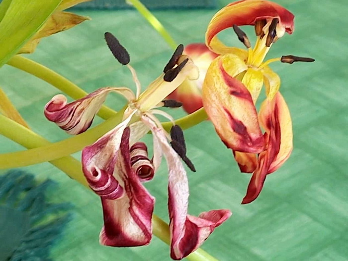 Ein Tulpenstrauß: ![]() Mira I hat ihn gekauft. Ein großer Strauß mit 25 Tulpen. Und nun ? Wie lange hält so ein Strauß ? Ein paar Tage ... dann fängt er an, nicht mehr so schön zu sein ? Und danach ? Danach fängt er an, noch viel weniger schön zu sein. Und nach 17 Tagen ? Wie ... der Strauß ist nicht schon längst entsorgt ? Bei Mira durfte der Strauß, der bei anderen längst schon im Bio-Müll gelandet wäre, immer noch stehen bleiben ... damit die Tulpen ihre ganz eigene Schönheit beim Verblühen entfalten dürfen: ![]() ![]() ![]() ![]() ![]() ![]() ![]() ![]() ![]() ![]() ![]() ![]() ![]() ![]() ![]() ![]() ![]() ![]() ![]() ![]() ![]() ![]() |