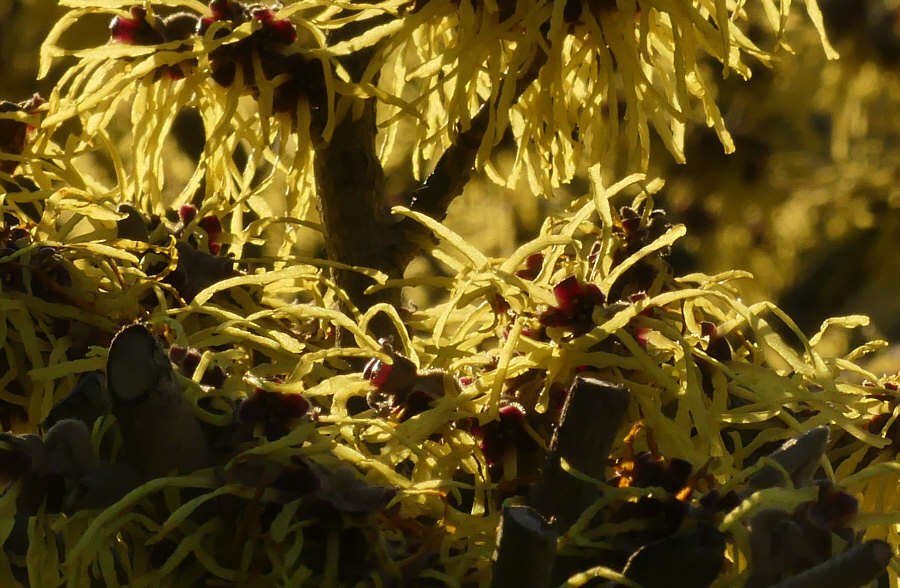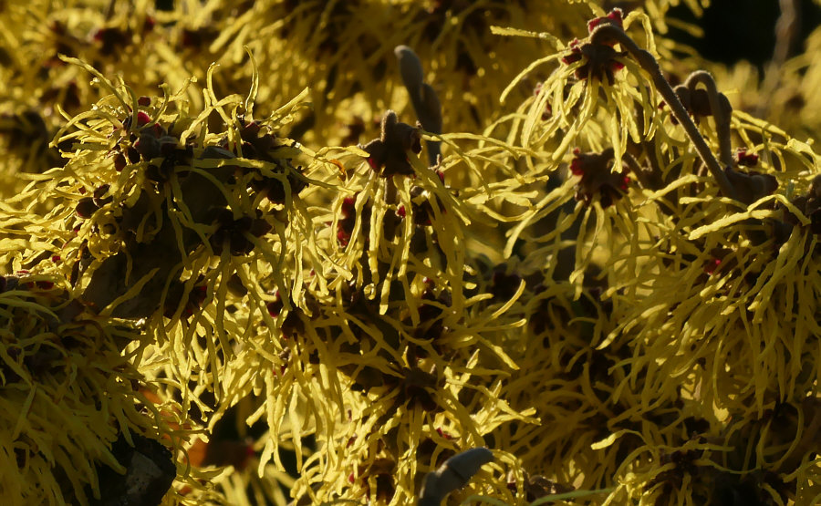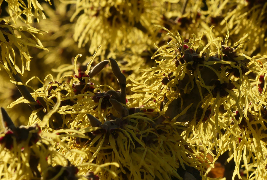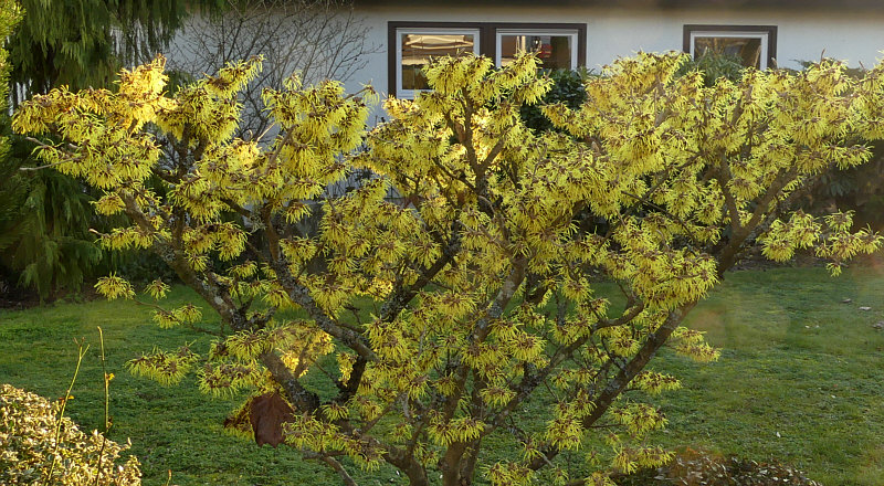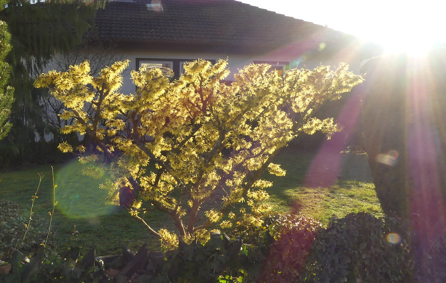 Am Sonntag im Nachbarort ... ![]() ... eine Zaubernuss, Aber es ist schon 16.49 Uhr ... ![]() ... und nur noch ein paar Spitzen des Strauchs liegen in der Sonne. Egal ... fotografiert wird trotzdem: ![]() ![]() ![]() Aber natürlich bin ich einen Tag später nochmal dort ... ... und diesmal früher, um 16.13 Uhr ... und ja, das hat genau gepasst, denn der gesamte Strauch leuchtet in der Sonne: ![]() ![]() Ich hab noch nie eine so toll blühende Zaubernuss gesehen. Da musste ich natürlich noch mal ganz in Ruhe bei Sonne fotografieren: ![]() ![]() ![]() ![]() ![]() ![]() ![]() ![]() ![]() |