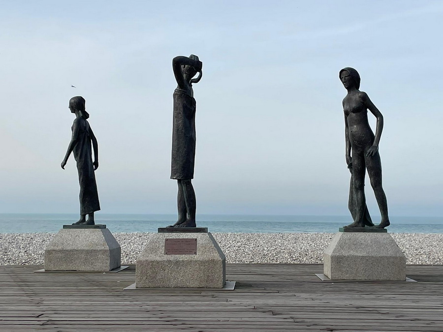 Weil ich hier Bilder größer zeigen kann als im Lichtblick, gibt es die dritte Folge der aktuellen kurzen Reise in die Normandie hier im Kalenderblatt. ![]() Étretat, 4. Tag: Mein Bekannter schreibt und zeigt: ![]() Der Tag beginnt wieder mit Nebel aber deshalb schauen wir nicht in die Röhre. ![]() Der Bahnhof von Étretat ohne Gleise. ![]() Dort war schon mal mehr los. ![]() Der Meerzugang in Vattetot-sur-Mer. ![]() Noch eine Stunde bis zum Maximum der Flut. ![]() Die Hänge sind sehr fragil. ![]() Der Name des Weges sagt schon alles (Weg der Villen). ![]() Erste Reihe am Meer. ![]() Komplizierte Dächer gehören irgendwie dazu. ![]() ![]() Wir schauen uns in Yport um, schön und beschaulich. ![]() Die Straße zum Strand. ![]() Die Badehäuser sind schon bereit für die Saison. ![]() OK, die hat scheinbar schon angefangen. Immerhin tragen die Damen Handschuhe ;)) ... ... und alle haben noch nicht mal gezuckt. ![]() Eine schöne Kulisse. ![]() Alte Liebe rostet scheinbar doch. ![]() Man kann schon fast darauf warten, dass der Hang abbricht. ![]() Hinten im Bild ist das hier schon geschehen. ![]() Ein Spaziergang am Meer ist nicht ratsam ... im Hintergrund ist Fécamp zu sehen. ![]() "Zeit zum Baden" heißt diese Skulpturengruppe auf der Promenade in Fécamp. ![]() Es gibt mehrere Hafenbecken je nach Art der Boote. ![]() Hinter den Booten ist die Altstadt die wir uns ein andermal ansehen wollen. ![]() Blick vom Cap Fagnet, ohne Dunst wäre das ja kaum auszuhalten ;)). [ morgen gehts im Lichtblick weiter ] |