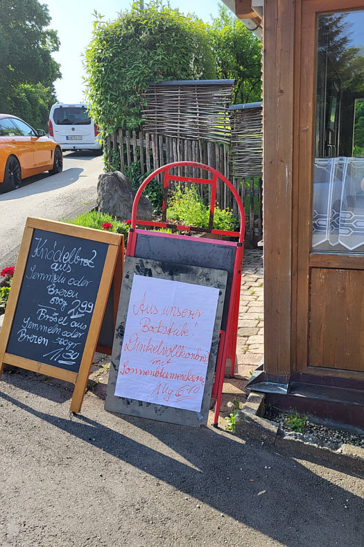 ![]() Die Aufgabe ist: (Du sagst mir, wo ungefähr du wohnst und ich suche dir eine Straße aus, die ich nicht kenne und du vielleicht auch nicht. Du fährst dorthin, steigst aus dem Auto aus oder vom Fahrrad, stellst den Timer auf dem Handy und dann hast du 30 Minuten Zeit, zu fotografieren. Von all den Bildern suchst du dann 10 aus, die ich zeigen werde.) In dieser Folge: Phoenixe Phoenixe zeigt und schreibt: Heute morgen, bei wunderbarem Sonnenschein, durfte ich nach Pähl radeln. Das ist ein kleiner Ort zwischen Ammersee und Starnberger See. Das ist gar nicht weit von mir entfernt, ich hatte Engelbert gebeten, im 5 km Radius zu bleiben und mir selbst auf der Karte einfach einen Radius um meinen Wohnort eingezeichnet. Engelbert war viel fürsorglicher und hat die Fahrstrecke auf 5 km begrenzt. ![]() Dennoch kenne ich sie nicht, die Urtlangerstraße in Pähl. Hier stehen Wohnbebauung und Landwirtschaft in direkter Nachbarschaft. Das zieht sich durch die ganze Straße. ![]() Die Nisthilfe für den Storch war leer. Das ist erstaunlich, gibt es doch sehr viele Störche bei uns, aber sie sind sehr eigensinnig. Auch in unserem Dorf wurde die Nisthilfe auf einem Hof abgelehnt und weiterhin der Strommast bevorzugt, den sie sich zuvor ausgesucht hatten ![]() Die Pfingstrosen blühen wunderschön, davor lauter Wiesenmargeriten. Generell gibt es in dieser Straße nahezu keine "geschleckten" Gärten ![]() Hier hat jemand ordentlich Holz vor der Hüttn. ![]() Und jemand anderer hat Pflanzen zu verschenken ![]() Hier hat mein Camperherzerl ganz hoch geschlagen. Was für ein wunderschöner uralter Wohnwagen! ![]() Ein uralter und ein moderner Bulldog. Wie sich doch die Dimensionen verändert haben ![]() Gebaut wird auch sehr viel. Nach diesem Haus ist auf der rechten Seite erst mal Schluß und es kommen nur noch Wiesen ![]() Dort hinten irgendwo ist mein Dorf zu finden. Die Berge dahinter kann man nur erahnen, es ist zu diesig. ![]() Hier hat jemand ein Fußballfeld ausgemäht. Vielleicht trainiert hier ein neuer Thomas Müller? Jetzt sind wir auch schon am Ende der Straße angelangt und ich wünschte mir, ihr könntet riechen was ich rieche. Herrlichen Duft nach Gebäck! ![]() Am Straßenende nämlich ein kleiner Edeka, ein ganz ganz kleiner, der einzige Nahversorger im Ort. ![]() ![]() Wenn es recht ist, würde ich die Fotos hiervon gerne als Bonus anbieten. Die alte Dame am Gebäcktresen hat mir erlaubt, Bilder zu machen. ![]() Sie fand mich sichtlich merkwürdig, aber offenbar harmlos. So ein Minilädchen ist auch bei uns selten. Es waren sehr viele Leute, die sich Semmeln, Brezen oder eine Brotzeit geholt haben Fazit: Mir hats total Spaß gemacht und ohne Engelbert wäre ich nie in diese Straße gekommen |