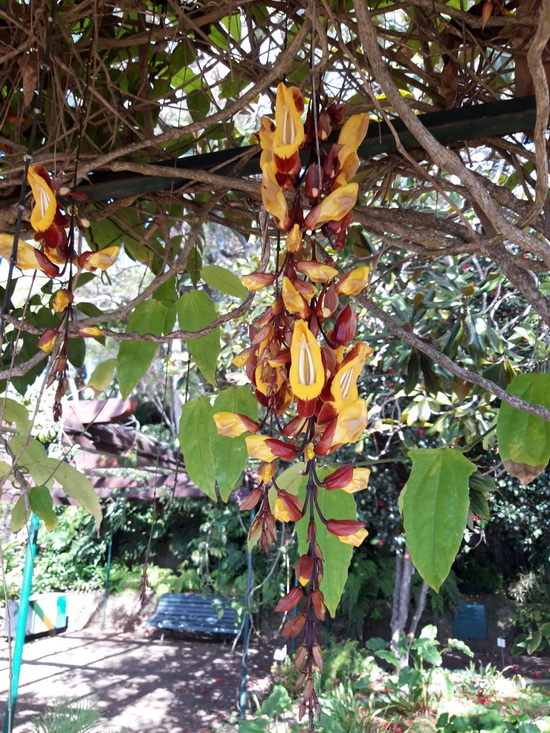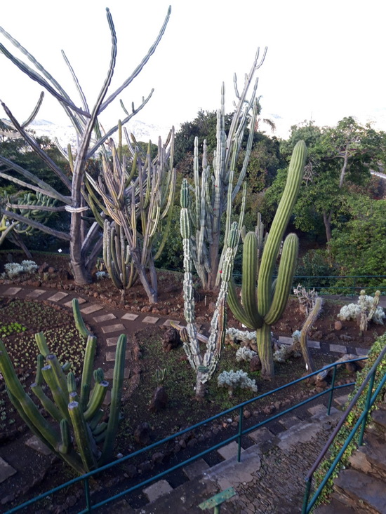 Mit Angelika V. nach Madeira Folge 5 ( Folge 1 - Folge 2 - Folge 3 - Folge 4 - Folge 5) Heute sind wir im botanischen Garten in Funchal. Und das hier ... ![]() ... ist ein lauschiges Eckchen beim Museum am Eingang des Botanischen Gartens. Und nun gehen wir nach den Blumen schauen. ![]() ![]() Bei herrlichem Sonnenschein leuchten die Strelitzien noch mal so schön. ![]() Lauter stachelige Gesellen im Kaktusgarten. ![]() Es gibt so unglaublich viele Sorten in ebenso vielen Größen. Durchaus interessant, aber Freunde werden wir nicht. Akkurat geschnittene ... ![]() ... geometrische Muster: ![]() ![]() Bougainvillen im Sonnenschein sind immer wieder bezaubernd. ![]() Blick vom Miradouro (Aussichtspunkt) im Garten auf Funchal und ein Stück Autobahn. ![]() Trompetenblume ![]() Azalee ![]() Diese Schönheit hat mir ihren Namen nicht verraten. Das finde ich etwas ärgerlich im Botanischen Garten, wenn die Namensschilder bei exotischen Pflanzen fehlen, aber welche bei jeder Ringelblume vorhanden sind. (Nachtrag Engelbert: ich hab mal meine Pflanzen-App bemüht, das ist die indische Thunbergie, auch Himmelsblume genannt). ![]() Kamelienblüten in einem Wasserbecken mit Wasserpflanzenbewuchs. ![]() Wigandia ![]() Noch mal Blick auf Funchal und auf den Hafen. An der Mole liegen fast täglich Kreuzfahrtschiffe. Wir haben für unseren Gartenbesuch zum Glück einen Tag ohne AIDA und Co erwischt. Sonst wäre es vielleicht nicht so schön ruhig hier oben. Das waren noch nicht alle Bilder vom Garten, in der nächsten Folge gehts weiter. |