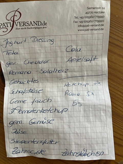 Seelenfärblertag Heute schaue ich mal wieder nach Euren Mails :)). Chrissy 27 ... ... hat einen "Beerentraum auf Nussbiskuit" gebacken, das Rezept hatte sie kurz zuvor in die Rezepte-Rubrik eingestellt. ![]() Veena ... ... hat mir Fliederbilder aus dem Garten ihrer Tochter geschickt: ![]() Aring ... ... hat das erste Auto überhaupt fotografiert ... den Benz-Patent-Motorwagen aus dem Jahr 1886. Nicht original, aber in liebevoller Handwerkskunst nachgebaut. ![]() ![]() ![]() Und diesen ganz besonderen Porsche: ![]() Liane ... ... schreibt dazu: "... komme soeben vom Rasenmähen und ich brachte es nicht übers Herz, diesen hübschen Pilz abzumähen, denn ich dachte mir, das wäre doch wieder ein Bild für Seelenfarben. Also schnell Handy geholt, bäuchlings auf den Rasen gelegt und klick. Habe mehrere von diesen Exemplaren, wahrscheinlich deshalb, weil ich so viel Moos im Rasen habe." ![]() Hey Liane, das ist wahrscheinlich eine Speisemorchel, ein von Sterneköchen gesuchter Delikatesspilz. So ähnlich sieht leider auch die Giftlorchel aus. Wilma ... ... weiß, dass ich liegen gebliebene Einkaufszettel gerne zeige und hat mir einen solchen geschickt: ![]() Zahnstäbchen ... diesen Ausdruck habe ich noch nie gehört, bei uns sind das "Zahnstocher" und es gab mal eine Zeit, da musste ich auch immer welche dabei haben. Lina ... ... erhält fast täglich Besuch von diesen beiden Türkentauben. Sie kommen schon über Jahre ... nicht jeden Tag ... aber immer wieder. Lina mag sie und freut sich immer wieder, wenn sie kommen. Normalerweise ist ihr Gefieder glatt und sie schauen schlanker als die anderen Taubenarten aus. Diese hatten sich nach den Regen ihre Federn zum Trocknen aufgeplustert. ![]() ![]() Doro ... ... freut sich, dass ihr Goldregen auch in diesem Jahr wieder in voller Pracht herrlicher Größe ein traumhaftes Blütenmeer zeigt: ![]() Ein Ausnahmeexemplar von einem Goldregenbaum. Christine L. ... ... zeigt uns "Mamas Margeritengarten" ... einmal am 18. Mai ... ![]() ... und das hier wurde 8 Tage später fotografiert: ![]() |