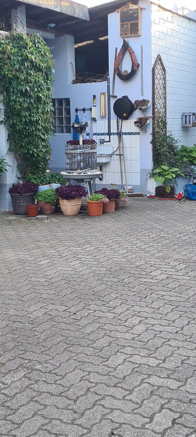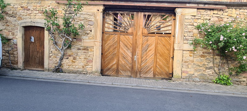 ![]() Die Aufgabe ist: (Du sagst mir, wo ungefähr du wohnst und ich suche dir eine Straße aus, die ich nicht kenne und du vielleicht auch nicht. Du fährst dorthin, steigst aus dem Auto aus oder vom Fahrrad, stellst den Timer auf dem Handy und dann hast du 30 Minuten Zeit, zu fotografieren. Von all den Bildern suchst du dann 10 aus, die ich zeigen werde.) In dieser Folge: Chrissy 27 Chrissy zeigt und schreibt: Hallo, ich darf euch zu einem Spaziergang ... ![]() ... in der Forstgasse in Ruppertsberg einladen. Ruppertsberg ist ein pfälzisches Winzerdorf mit 1500 Einwohnern und liegt zwischen Neustadt a.d. Weinstraße und Bad Dürkheim. Es gehört zu der Verbandsgemeine Deidesheim. ![]() Wir starten in der Dorfmitte und sehen gleich ein älteres Winzerhaus mit einem typischen großen hölzernen Tor und einer kleinen Tür daneben. ![]() Ein paar Schritte weiter springt mir diese doppelflügige, hölzerne Haustür direkt vor die Linse. ![]() Auf der gleichen Seite erblicke ich wenig später diesen Giebel. Auch ganz typisch sind hier die eng ans Haus gepflanzten Bäume. Dies sind Walnussbäume, oft sieht man aber auch alte Rebstöcke. Ich schätze, dass die Wurzeln u. U. sogar unter das Fundament reichen. ![]() Diese freigelegte alte Sandsteinmauer mit dem großen Tor und dem Rosenstrauch rechts daneben hat mir gut gefallen. Durch die Ausschnitte im oberen Teil des Tores konnte ich einen Balkon sehen, auf dem sich ein älterer Mann aufhielt. ![]() Aber auch das gibt es: Ein Anwesen mit einem geschmiedeten Tor, das den Blick in den Hof freigibt. ![]() Ich entdecke eine alte Traubenpresse, die nur noch zur Dekoration genutzt wird. ![]() Auf der linken Seite entdecke ich auf einem Betonpfosten diese Eule. Was oder wen bewacht sie wohl? Es gibt ein moderneres Tor aus Metall mit geraden Stäben, die zwar recht eng zusammen stehen, aber ich kann dahinter einen schön angelegten Garten erkennen. Eine junge Frau ist in dem Anwesen unterwegs. Ich spreche sie an und frage, ob ich ihren Garten fotografieren dürfe. Sie ist sehr freundlich, schließt das Tor auf, bittet mich herein und stellt sich vor. Sie erzählt, dass sie das Haus vor 2 Jahren gekauft hätten. Im Innenbereich sei ein langweiliger Rasen gewesen und sie hätte den Garten in den letzten Monaten mit viel Liebe und Arbeit neu gestaltet. Nun könnte sie viel mehr Insekten und auch Vögel beobachten. Schaut selbst: ![]() ![]() ![]() ![]() Meine Zeit ist vorbei und ich verabschiede mich von ihr. Die Forstgasse ist noch nicht zu Ende. Es hat mir viel Spaß bereitet all die Anwesen zu entdecken. Gerne hätte ich noch hinter all die anderen Tore geschaut, auch hinter die, die ich hier nicht gezeigt habe. |