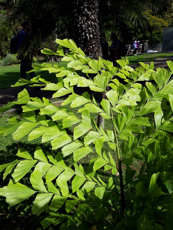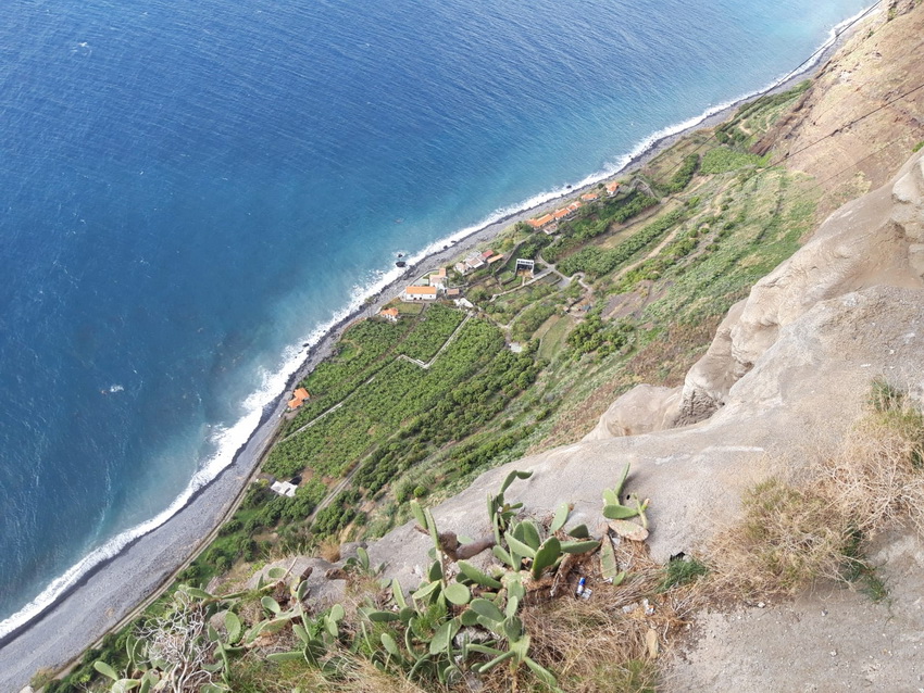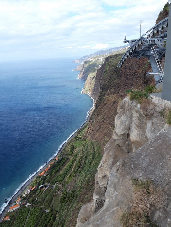 Mit Angelika V. nach Madeira Folge 7 ( Folge 1 - Folge 2 - Folge 3 - Folge 4 - Folge 5 - Folge 6 ) Zuerst noch ein paar Bilder vom botanischen Garten in Funchal. ![]() Diese Schönheit hätte ich gerne in meinem Garten und ... ![]() ... sie hat mir auch ihren Namen verraten. ![]() Samenstand der Phönixpalme ![]() ![]() Palmira namenlosis ginkoblatticans ![]() Hübsch durch ihre gingkoblattförmigen Wedel, aber leider ohne Namen. (Anmerkung Engelbert: meine App sagt "buschige Fischschwanzpalme") ![]() Puderquastenstrauch. Es hat mich erstaunt, dass er zur Familie der Hülsenfrüchte gehört. ![]() In Form geschnittene Gehölze. Und nach so viel Grün ein bisschen Blau: ![]() Der Strand von Santa Cruz. ![]() Mit der Landebahn vom Flughafen. ![]() Ilhas Desertas am Horizont. ![]() Einfach blau. ![]() Flugzeug im Landeanflug. Wieder im Ort ... ![]() ... Aussparungen in den Wänden waren mit Kanistern gefüllt die aussehen, als würden sie uns freundlich anlächeln. ![]() Nun wird es spektakulär. Wir sind ein wenig weitergefahren bis Quinta Grande und zum Teleférico Fãja dos Padres. Eine Seilbahn die uns an der Steilküste in die Tiefe bringt. ![]() ![]() Ein Symbol für die entbehrungsreiche Vergangenheit des Ortes. Oben auf einem Aussichtspunkt in einem kleinen Park gestaltet. Der wellenförmige Rasen, der leider nicht so deutlich herauskommt, soll die raue See symbolisieren. ![]() Da unten wollen wir hin. Faja dos Padres, ein kleines abgeschiedenes Paradies, das nur mit der Seilbahn oder einem Boot erreichbar ist. ![]() Fast unten. Und dort gehts morgen schon weiter mit Bildern aus diesem kleinen Paradies. |