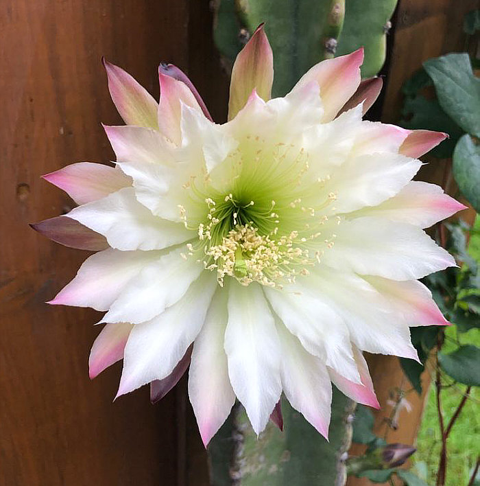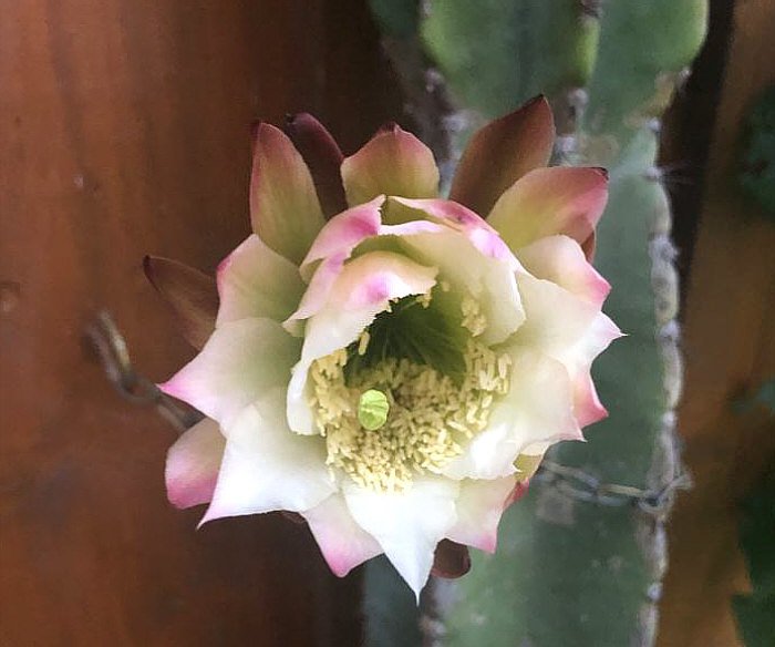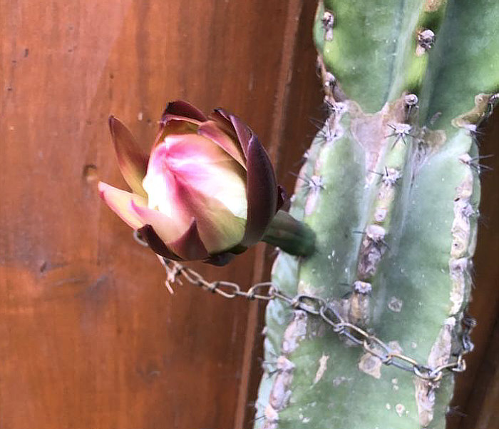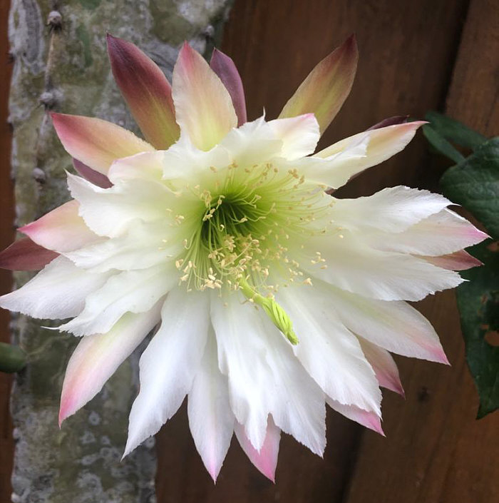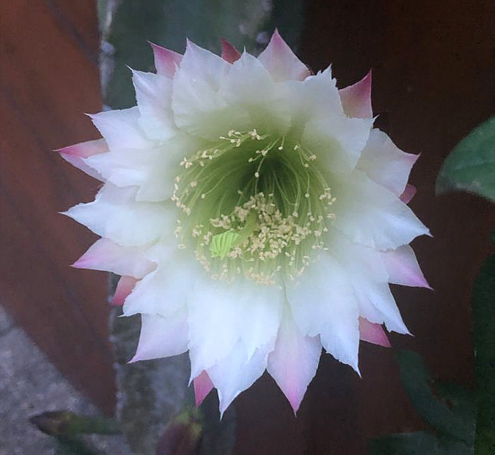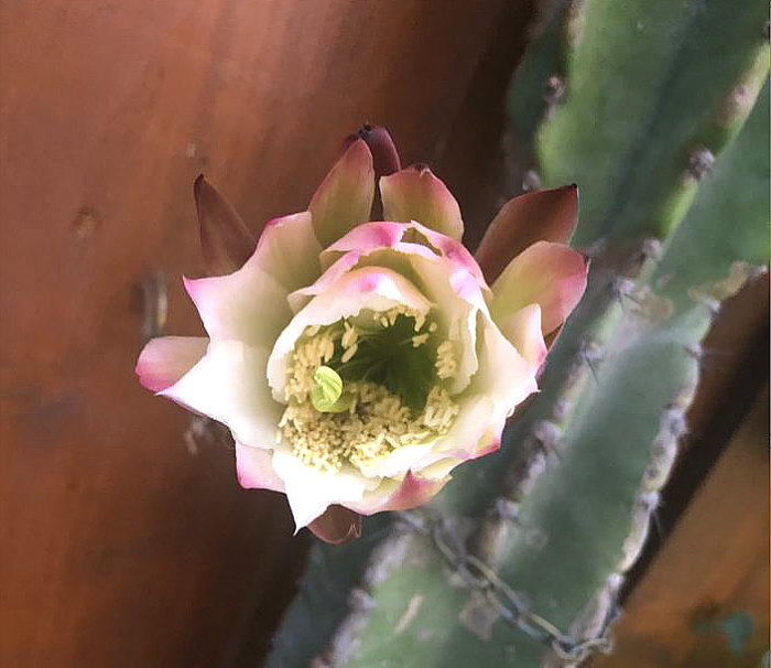 Heute sind wir bei der Maritta auf der Terrasse. Und dort steht ... ![]() ... ein Kaktus, den sie vor über 20 Jahren geschenkt bekommen hat. Inzwischen ist er so groß, dass er geteilt werden musste. Er steht von Oktober bis Mai im Flur und war für diesen Raum zu groß geworden. Einmal im Jahr blüht er, aber leider nur eine Nacht. Meist sind es 3 - 7 Blüten. In diesem Jahr waren es fünf ... und es ist immer eine große Freude, wenn die Blüten sich ankündigen ... eine Blüte hat Maritta fotografisch begleitet. Marittas Pflanzen-App sagt "Königin der Nacht", meine App sagt "Cereus Repandus", eine Kakteenart der Gattung Felsenkaktus. Ist aber egal ... wenn eine Blüte nur eine einzige Nacht blüht, ist sie in dieser Nacht automatisch die Königin: ![]() ![]() ![]() ![]() ![]() ![]() |