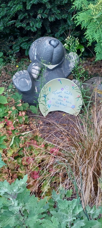 ![]() Die Aufgabe ist: (Du sagst mir, wo ungefähr du wohnst und ich suche dir eine Straße aus, die ich nicht kenne und du vielleicht auch nicht. Du fährst dorthin, steigst aus dem Auto aus oder vom Fahrrad, stellst den Timer auf dem Handy und dann hast du 30 Minuten Zeit, zu fotografieren. Von all den Bildern suchst du dann 10 aus, die ich zeigen werde.) In dieser Folge: Silvi Silvi war in der Gemeinde Lehre im Ort Groß Brunsrode unterwegs. Und dort im ... ![]() ... Bockshornweg. Silvi zeigt und schreibt: Nachdem mir Engelbert Ort u Straße geschrieben hatte, habe ich mich auf den Weg gemacht und bin in diese Straße gegangen. Keine so schöne Straße, aber ich habe das beste draus gemacht und in 30 Minuten einige Fotos gemacht. ![]() Unkraut u vielleicht ein Eingang fürs Kätzchen ... na weiter geht es ... ![]() ... das ist die Straße. Am Ende der Straße sind Felder. ![]() Ich denke, mit dem Fahrrad zu fahren ist hier bestimmt schön. ![]() In diesem Garten fuhr ein Roboter hin und her. ![]() Hier hätte ich mich gerne hingesetzt, aber das war privat. ![]() Manche Gärten waren schön angelegt. ![]() ![]() ![]() Tja ... auch ein solches Schild sah ich ... fand ich gut. ![]() Der Rasen war ja auch interessant, vorne Quadrate, hinten Kreise. Wie bekommt man sowas hin?! Bin dann noch zum Ortsausgang gegangen. ![]() Da fand ich das nette Kerlchen in einem verwilderten Garten. Es war ein schöner 30minütiger Rundgang. Ich kannte den Ort nur vom Durchfahren. Meine ehemalige Kollegin wohnte dort. Es hat mir Spaß gemacht. ![]() Wie ich schrieb, wohnte meine ehemalige Kollegin dort. Sie verstarb 2020. Per Zufall kam ich auf dem Hinweg an dem Friedhof vorbei. Den ich genauso nicht kannte wie diesen Ort. Bin dann auf der Rücktour noch zum Friedhof. Ein netter Herr dort verriet mir, wo sie beigesetzt wurde. Also Dörfchen und jeder kennt jeden. Ich hatte mich mit dem Herrn noch nett unterhalten. Weiß nicht, ob man das noch in die Fototour einbringen kann. Entscheide du es. Denn nur durch dich bin ich am Grab einer lieben Kollegin vorbei gekommen. Was liebevoll gestaltet ist. |