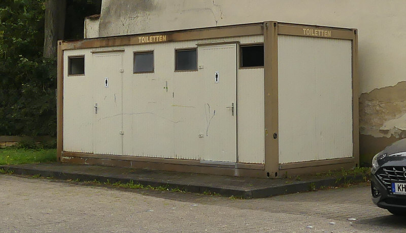 ![]() Folge 1 Da stehen wir ... ![]() ... und hier bleiben wir auch über 3 1/2 Stunden lang stehen. Weil wir einen gemütlichen Stadtspaziergang durch Meisenheim machen wollen. Von Anfang bis Schluss mit der Kamera begleitet ... ... schon beim Aussteigen aus dem Auto wusste ich, dass das ein Kalenderblatt-Spaziergang geben wird. Darum heißt es heute: kommt doch mal mit :)). Wir stehen auf einem kostenlosen Parkplatz mit unbegrenzter Parkdauer ... wie schön :). Am Ende des Parkplatz ... ![]() ... findet sich etwas containerähnliches, das sich beim näheren Hinschauen ... ![]() ... als öffentliche Toilette herausstellt. Einer der älteren Art. Und eine der selteneren Art ... weil kostenlos. Was heutzutage selten geworden ist. Da gehn wir jetzt mal rein ... ... wie ... ob das wirklich sein muss. Wenn man muss, dann ja ... dann muss das sein. Es ist ja nicht so, dass man damit rechnen kann, in der Stadt weitere Toiletten zu finden. Also rein mit uns, damit wir erleichtert wieder raus kommen. Bei den Männern entdecke ich etwas, dass ich nur selten und schon lange nicht mehr gesehen habe ... ![]() ... eine Rinne in passender Höhe für alle Flüssigkeiten, die den Körper verlassen möchten. Auf die Toilette musste ich nicht ... ![]() ... aber sie wäre sauber gewesen und es hätte sogar Papier gegeben. Vor drei Jahren und vier Monaten undenkbar gewesen ;). Es war alles alt ... aber soweit sauber. Man hat gesehen, dass da mindestens einmal am Tag jemand nach dem rechten schaut. Das Waschbecken ... ![]() ... okay, da hat sich der Zahn der Zeit auf dem Boden versammelt, das ist alles Jahre oder Jahrzehnte alt ... Papier-Handtücher sind eh out ;) ... ![]() ... und dessen Halter hätte eigentlich mehr Zeit verdient gehabt. Aber ich hatte gar nicht dran gedacht, Makroaufnahmen von den Roststrukturen zu machen. Und sorry, der Gleichberechtigung wegen müssen wir auch bei den Damen vorbeischauen. ![]() Auch so weit sauber ... und wir müssen hier Maßstäbe für eine öffentliche Toilette anwenden und nicht die, wie man daheim einen solchen Ort haben möchte. Beate setzt sich auf solchen Toiletten übrigens nie hin, das dann doch nicht. Oberstes Gebot für eine solche Toilette: "du sollst nicht vögeln" ? Nicht auf dieser Toilette ... denn ... ![]() ... das fanden wir an der gegenüberliegenden Seite vom Waschbecken bei den Damen. Ja, damit hätten wir nun doch nicht gerechnet. Ich denke, das ist ein Sicherungskasten. Zurück im hellen und auf dem Parkplatz ... ![]() ... und ich begrüße jetzt auch alle die, die vor Schreck erst mal schnell nach unten gescrollt haben, bis die Toilettenbilder vorbei sind *gg*. Nein, wir gehen nicht zurück, wir haben nichts vergessen ;). Aber guckt mal, da rechts ... da steht so ein knuffiges Auto ... ![]() ... wenn man das Teil überhaupt so nennen darf ;)). Das ist ein "Graf Carello Duett mit Kabine". Ein Elektromobil, ein Seniorenfahrzeug. So sieht das von vorne aus ... ![]() ... und so von innen: ![]() Wohl dem, der als Senior so viel Zaster hat. Aber wenn das der Fall ist, ist so ein Fahrzeug Gold wert. Auch wenn es rot ist ;). Wir verlassen jetzt mal den Parkplatz ... gehen an der ... ![]() .. fehlenden Madonna vorbei ... und werfen einen Blick ... ![]() ... in einen parkähnlichen Garten. Die ersten Blümchen kreuzen unseren Weg ... ![]() ... Jelängerjelieber ... und ... ![]() ... die gewöhnliche Waldrebe, eine Clematis-Art. In Österreich übrigens auch als Lüln, Lün, Lian, Ulischwidn, Waschl, Liasch, Irlisch bezeichnet. Woher ich das weiß ? Durch Lesen ;) ! Aber ich bin auch Hellseher ... ich weiß zum Beispiel, dass dieses Tor ... ![]() ... schon lange nicht mehr zugemacht wurde. Woher ich das weiß ? Hellseher ! Oder auch Pflanzenseher ;): Nach dem Motto ... Farn Farn Farn auf der Autobahn ... ja, iss ja schon gut jetzt ;)). Auf dieser Straße laufen wir übrigens gerade ... ![]() ... ja, wirklich auf der Straße ... wenn es der Verkehr erlaubt, dann laufe ich lieber auf der Straße als auf dem (hier sehr schmalen und teilweise zugewachsenen) Bürgersteig. Blick nach links ... ![]() ... viel Grün und im Hintergrund eine Kirche. Wer weiß, vielleicht kommen wir an der auch noch vorbei. Je nachdem, wohin uns unsere Füße tragen. Wir biegen auf jeden Fall mal hier links ab ... ![]() ... auf dem Schild steht immerhin Schloßkirche, aber ich hab so das Gefühl, dass wir da nicht auf direktem Weg hingehen. Aber wer weiß ... auf jeden Fall ... ... [ wird fortgesetzt ]. |