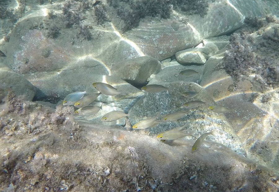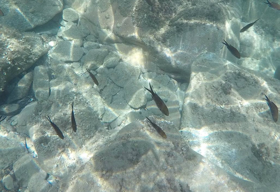 Willkommen unter Wasser. Willkommen live bei Jutta aus Bayern. Denn Jutta ist immer noch dort ... und immer noch unter Wasser ;). Wir sind heute in Arbatax auf Sardinien. Jutta und Mann wohnen in einer Ferienanlage, die sehr gut in die Hügel am Meer eingebettet ist. Zur Anlage gehören mehrere Strände. Und eine Bucht, die auch super zum Schnorcheln geeignet ist. Und so hüpfen wir nun ins Wasser. Denn Jutta hat mit einer GoPro-Kamera Unterwasserfotos gemacht. Gleich ... erst mal noch zwei Bilder vom Land: ![]() ![]() Und nun gehts langsam ins Wasser: ![]() ![]() Jetzt tauchen wir ein in die Unterwasserwelt: ![]() ![]() ![]() ![]() ![]() ![]() ![]() Hach, das Internet machts mal wieder möglich, dass wir Dinge sehen, die wir sonst nie sehen würden :)). |