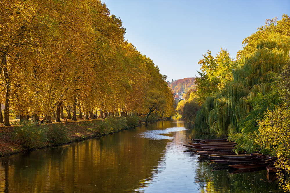 ![]() Goldener Oktober in Tübingen. Der Neckar zwischen der Neckarinsel mit ihrer Platanenallee (links) und der Neckarfront der Altstadt (rechts) im Herbst, gesehen vom Fußweg unterhalb der Neckarfront mit Blick nach West-Südwesten. (zurück zur Kirche ... klicke hier) |
