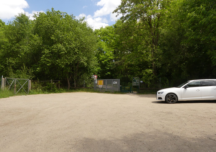 Auf diesem Parkplatz stehen wir und wir müssen gerade aus weiter laufen.