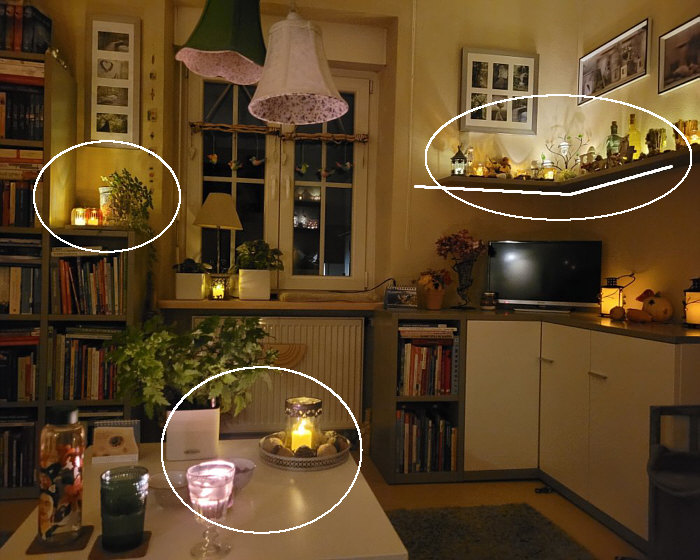 Das Licht links, das Licht unten, das Licht rechts oben.