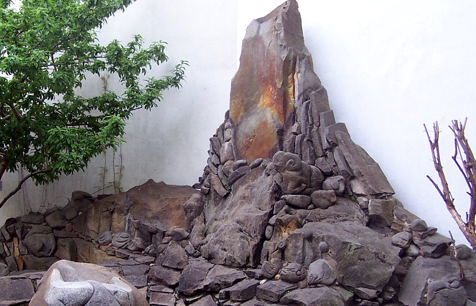 Hier wurden in einer Kombination aus Sgraffito und Mosaik Fabelwesen