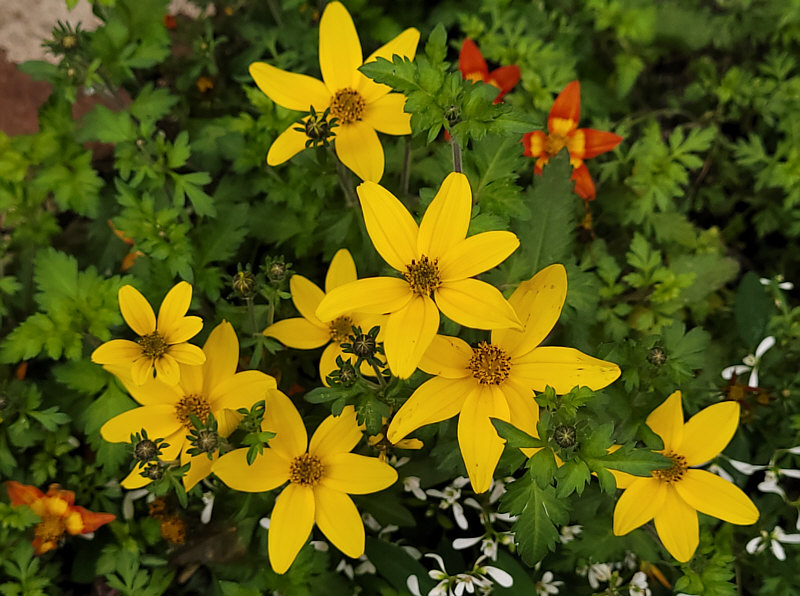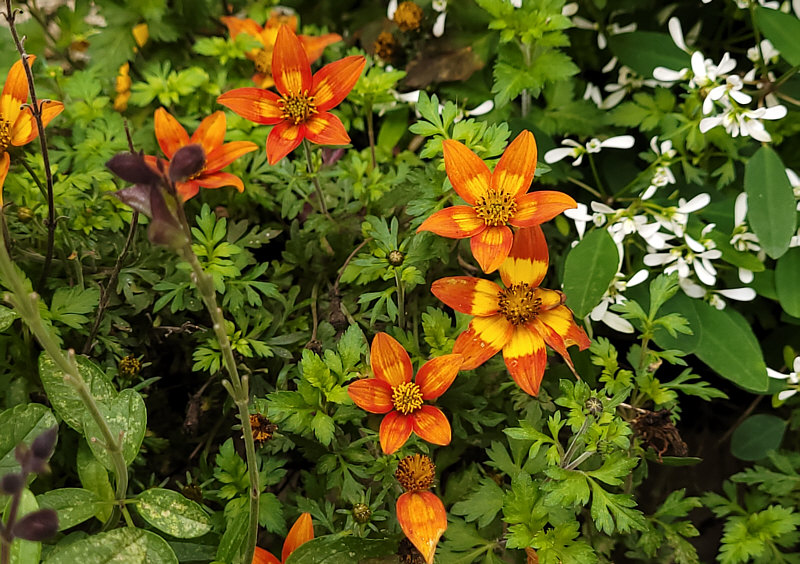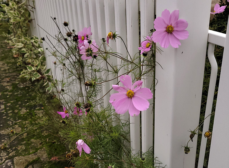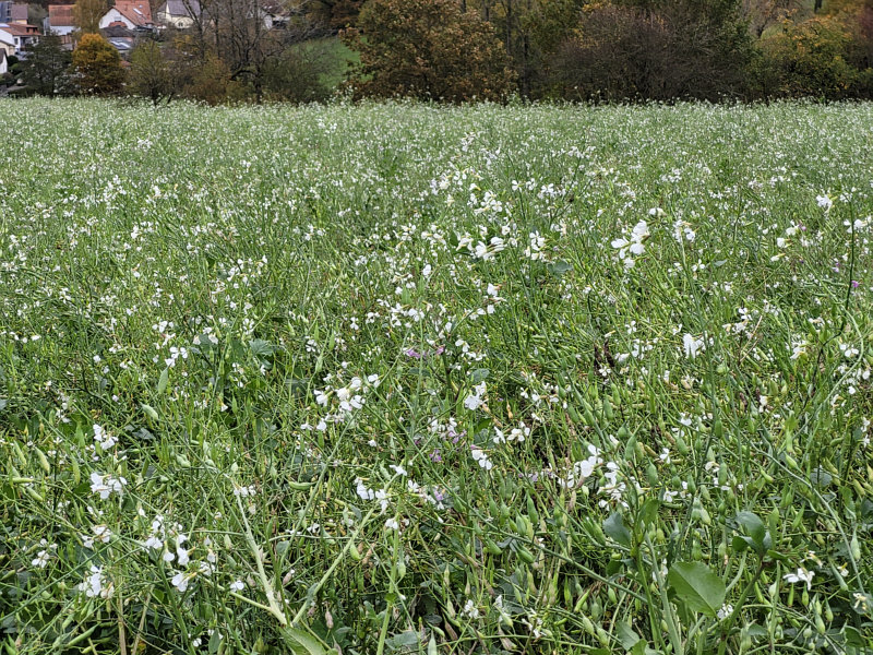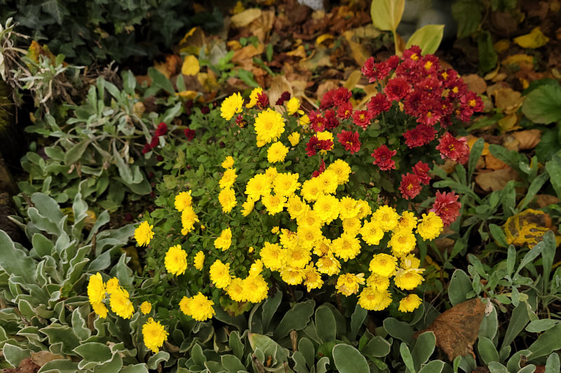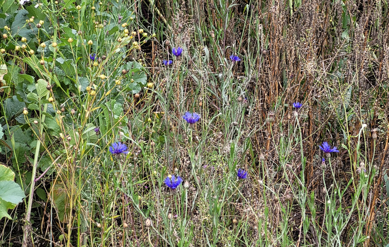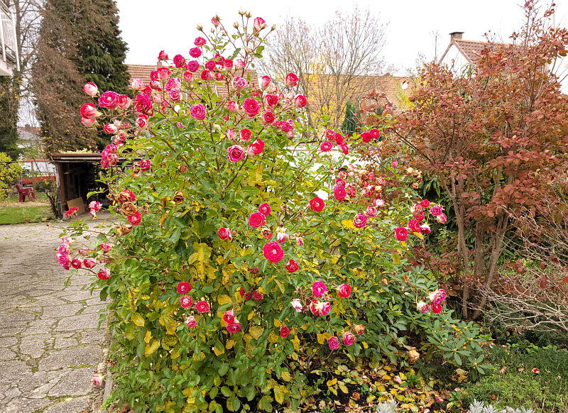 Die ganze Woche zeigte ich Seelenfärblerbilder/texte, nächste Woche auch wieder ... aber heute mal eigene Bilder, die ich gestern an einem ganz normalen trüben Novembertag fotografiert habe. Allerdings nur mit dem Handy ... ich wollte in erster Linie laufen und hatte deswegen nur das Handy dabei, die Qualität der Bilder ist also nicht ganz so gut wie mit der Kamera. Allzu viel habe ich nicht fotografiert auf meiner großen Runde (4,4 km) hier in Bruchmühlbach ... ein paar Bilder kann ich aber zeigen: Hinter den Häusern, wo zwei Felder beginnen ... ![]() ... blüht die Gründüngung. Das dürfte wieder diese Kohlart sein ... ![]() ... wie man an der Wurzel sieht. Manche Blüten sind lila und einige Samenschoten gibt es auch: ![]() Und sogar einzelne Kornblumen: ![]() Dann geht es ein Stück durch den Wald: ![]() Wieder bei den Häusern ... blüht noch diese Rose: ![]() Ich bin da extra vorbei, weil dort meistens auch im November noch eine Rose blüht. Vorne um die Ecke liegen einzelne Blätter auf dem Gehweg ... ![]() ... da musste ich mich dann doch mal tief bücken, da konnte ich nicht vorbei gehen, ohne zu fotografieren: ![]() ![]() Nun käme das Kunstrasenbild, aber das habe ich schon im Tagebuch gezeigt und so ein Bild muss man ja nicht zweimal zeigen ... ... schauen wir lieber nach den nächsten Blümchen: ![]() Es gibt sogar noch Cosmea, die durch den Zaun gewachsen sind: ![]() Nix mehr wird das aber ... ![]() ... mit den Chilis, die ich auch fotografiert habe. Dafür blüht die schon mal gezeigte Rose auch sechs Tage später immer noch so toll: ![]() Jetzt bin ich schon fast wieder zu Hause ... ja, und daheim vor der Haustüre blüht es auch noch in Beates Töpfen: ![]() Herbstsalbei ... und was auch noch immer blüht und blüht (seit Sommer) ... ![]() ... ist der Zweizahn in gelb ... ![]() ... und in Orange mit Gelb. Die weiße Blume nennt sich "Schneegestöber". Danke fürs Mitlaufen ... ihr seid virtuell gut zu Fuß heute :). |