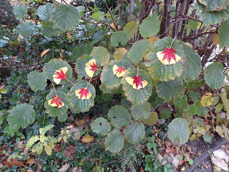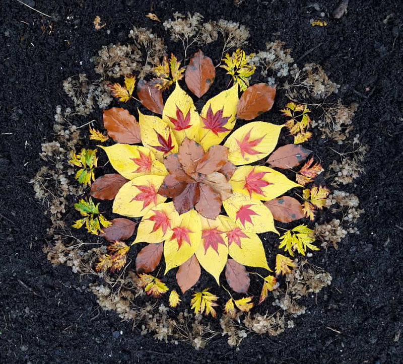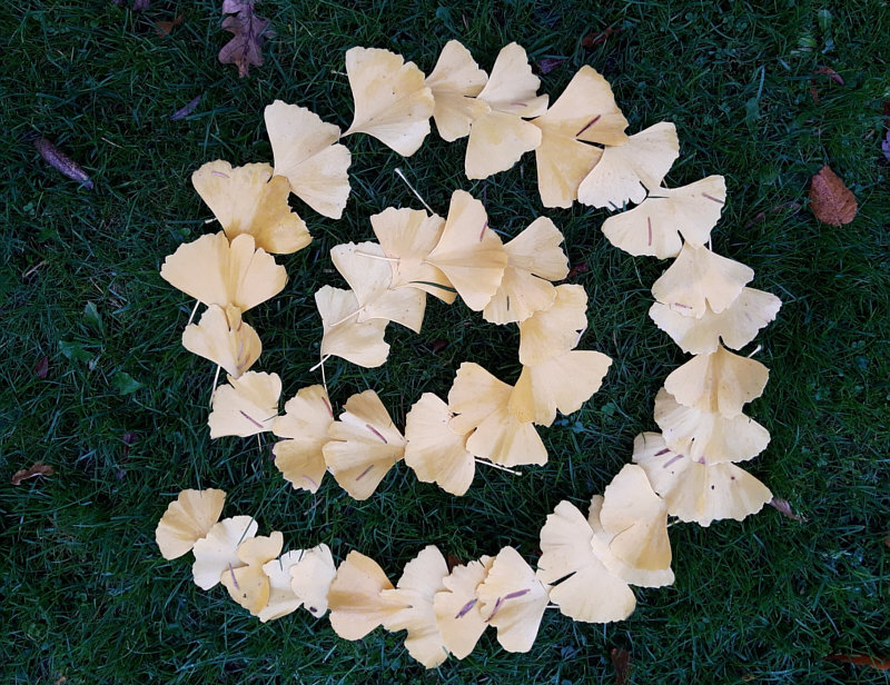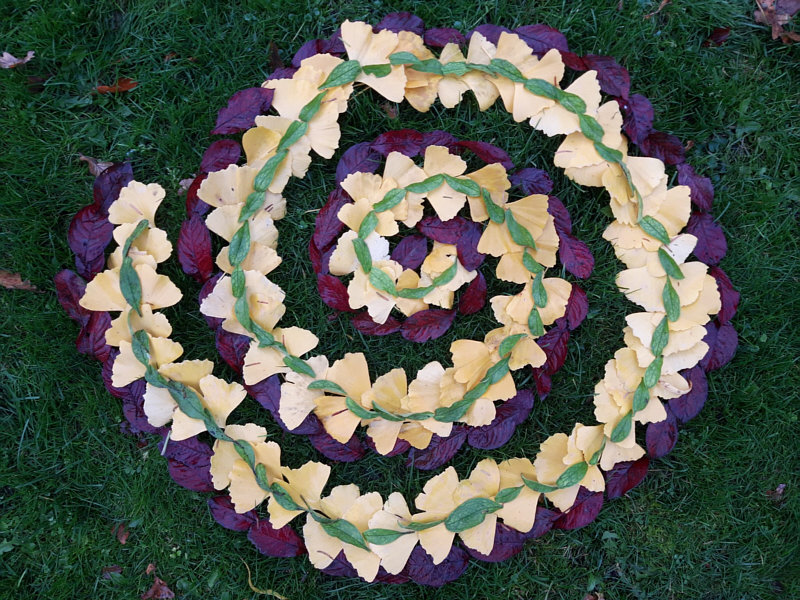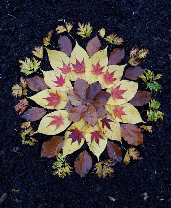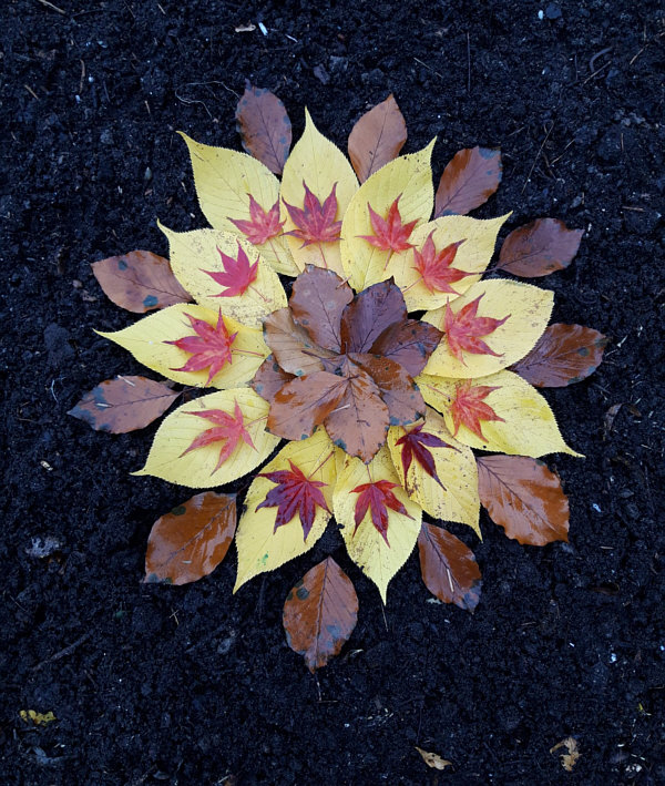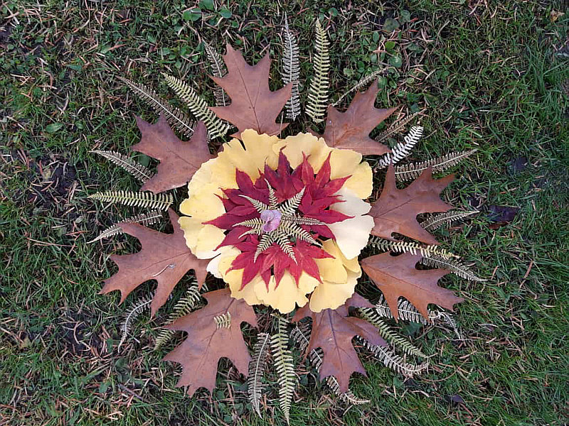 Es geht weiter mit den Seelenfärbler-Bildern ... ... dieses Bild ... ![]() ... hat mir Angelika V. mit dem Text "Liebe Grüße aus meinem Garten" geschickt. Da musste ich mal nachfragen, was hier denn genau zu sehen ist. Angelikas Antwort: "Farn, Eichenblätter, Gingko, Japanischer Ahorn, noch mal Farn und in der Mitte eine Hortensienblüte. Von außen nach innen beschrieben. Gesammelte Blätter aus meinem Garten ... in ein paar windstillen Augenblicken auf dem Rasen drapiert. Kurze Zeit später in ihrem Status: ![]() Da bat ich Angelika, doch mal ein paar Worte mehr zu machen ... sie schreibt: "Jeden Tag ist unser Hof, die Terrasse und die Einfahrt voll mit neuen Bergen von Blättern. Ich könnte mich darüber ärgern. Aber bevor ich das tue (Ärgern macht hässlich sagte meine Oma immer) erfreue ich mich am Geruch, an den Formen und an den Farben. Und wenn das meiste weggefegt ist, verlockt das bunte Laub zu kleinen Spielereien. Oben habe ich Gingkoblätter und Ahornblätter auf die großen Blätter von unserem Haselnussstrauch gesteckt. Du kennst vermutlich den Spruch: "wenn kleine Kinder spielen sind sie gesund. Und wenn große Kinder spielen sind sie heiratsfähig" Damit bin ich schon manches Mal belächelt worden. Oder mit "Jugend forscht", wenn ich mir etwas ganz intensiv aus der Nähe angeschaut habe." Ob sie weitere Bilder hat, fragte ich. ![]() Unvollendet ... hier hat ein Schauer die Angelika bei ihrem Kunstwerk unterbrochen. Doch kurze Zeit später: ![]() Beim nächsten Blättermandala lässt uns Angelika sogar am Entstehen teilhaben: ![]() ![]() ![]() |