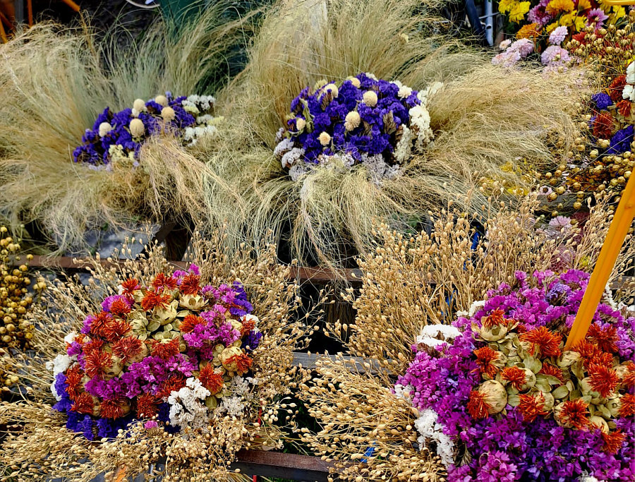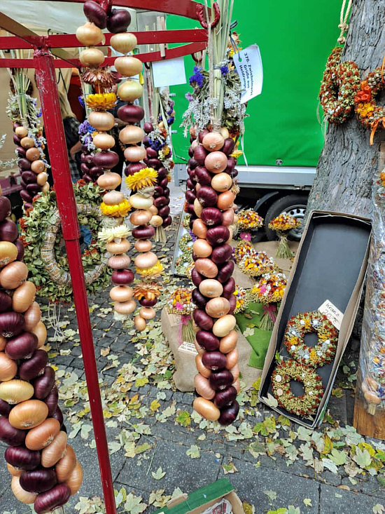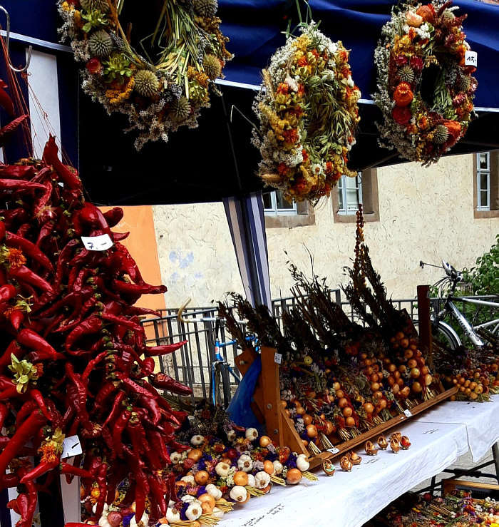 Auch heute Seelenfärblerbilder ... heute dürfen wir Sywe begleiten. Sie war auf dem Zwiebelmarkt. Dieser findet in jedem Jahr am 2. Oktoberwochenende von Freitag bis Samstag in Weimar statt. Ihn gibt es schon seit 1653 ... damals wurde er als "Viehe- und Zippelmarkt" erstmals erwähnt. Der Markt erstreckt sich heute über die gesamte Altstadt. Auf fünf großen Bühnen und mehreren kleineren werden von ca. 500 Künstlern verschiedene Programme geboten und ca. 600 Stände laden zum Essen und Einkaufen ein. Gastronomischer Schwerpunkt des Zwiebelmarkts ist der Verkauf von Zwiebelkuchen und Federweißem. Ein beliebtes Souvenir sind kunstvoll geflochtene Zwiebelzöpfe aus Zwiebeln und Trockenblumen. Es gibt sogar eine Zwiebelmarktkönigin. Und es gibt Bilder, die Sywe fotografiert hat: ![]() ![]() ![]() ![]() ![]() ![]() ![]() ![]() ![]() ![]() ![]() ![]() ![]() ![]() ![]() ![]() Und noch ein paar Bonusbilder vom Mittelaltermarkt, der ebenfalls statt fand: ![]() ![]() ![]() ![]() ![]() ![]() ![]() ![]() |