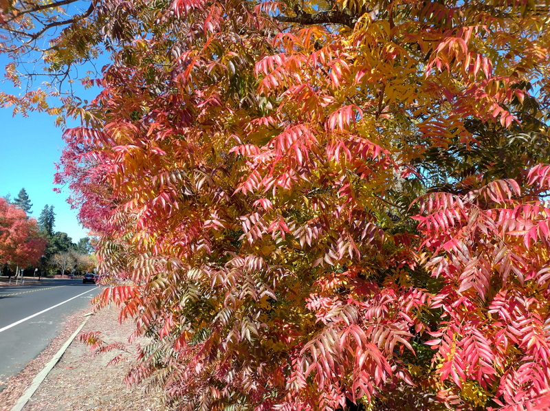 Heute ... bzw. in diesen Stunden ist sie auf dem Heimflug ... über den großen Ozean nach Hause ... ReginaE. 10 Tage war sie drüben ... in San Jose, Kalifornien ... ... bei ihrere Tochter und den großen Enkelkindern, die ReginaE überall hingefahren haben. So auch über die Golden Gate Bridge: ![]() ... dort gab es fliegende Händler. Viele hatten Urlaub, es war kurz vor Thanksgiving und es gab genug Kundschaft. ![]() In der Nähe von Chinatown in San Francisco gibt es diesen Buchladen: ![]() ![]() ![]() Natürlich gehts danach in chinesische Restaurant ... ![]() ... mit chinesischer Bäckerei: ![]() Bei der Rückfahrt merkte man, dass es abends schneller dunkel wird und es gibt in den Orten kaum Straßenbeleuchtung. Dafür war dieses Gebäude illuminiert: ![]() An den ersten beiden Tagen hatte es ziemlich geregnet, aber danach war es damit vorbei. Nachts gehen die Temperaturen unter 10 Grad und tagsüber bis knapp unter 20 Grad. Der Wind ist lauwarm bis frisch. Am ersten Tag war ReginaE im Ruth Bancroft Garden mit ihrem Enkelsohn. Das ist ein Kakteen-Sukkulenten-Garten, ehemals privat und nun eine Stiftung. Dort hat ReginaE dieses Bild einer Gottesanbeterin am Kaktus gemacht: ![]() ![]() Und dann vorgestern der Ausflug nach Stanford ... am herbstleuchtenden chinesischen Pistazienbaum vorbei ... ![]() Da wachsen ein paar Bäume an der Straße entlang und immer sind dort Menschen, die Fotos machen. Denn Stanford ist bekannt für seinen Park mit altem Baumbestand aus der Gründerzeit des Ehepaares, die auch die Uni gegründet hatten. Das ist die Bixbee Bridge ... ![]() ... und da ... ![]() ... ist hinter den Bäumen das Haus von Brad Pitt zu erahnen. Man kommt dort vorbei und es gibt eine Haltebucht zur Aussicht auf den Pazifik. Reginas Tochter und sie hatten sich das Haus vor fast 10 Jahren zufällig von innen angeschaut, als es verkauft werden sollte. Es ist bekannt unter "D L James Seaward House in Carmel by the Sea", was die beiden damals nicht wussten. Etwas größer zeige ich das letzte Bild ... ![]() ... diese Aussicht hat man am Highway 1, der Küstenstraße, bei der Fahrt in Richtung Süden. Wie gesagt ... ReginaE fliegt heute nach Hause ... mit all diesen Erinnerungen. |