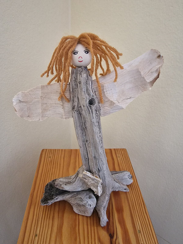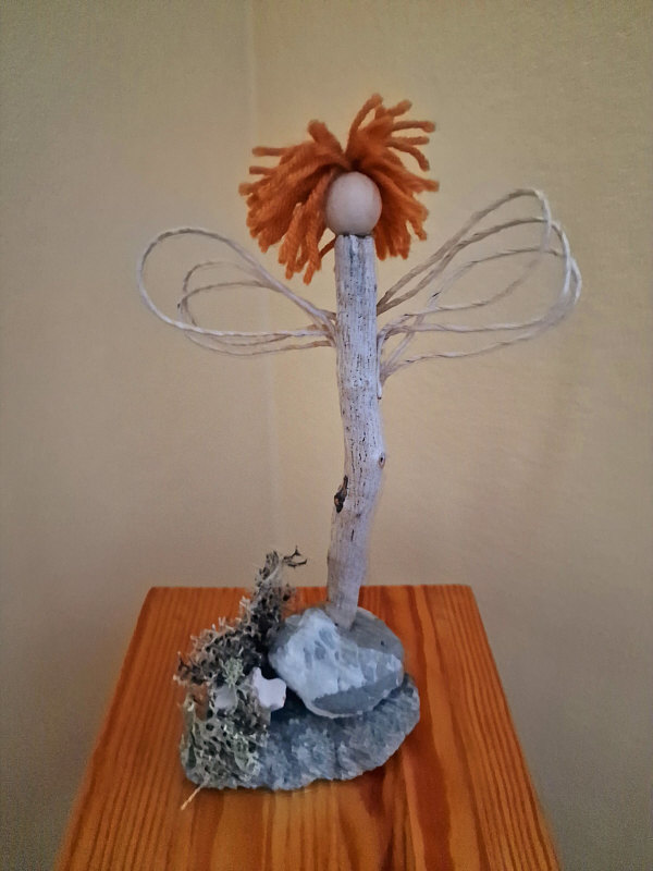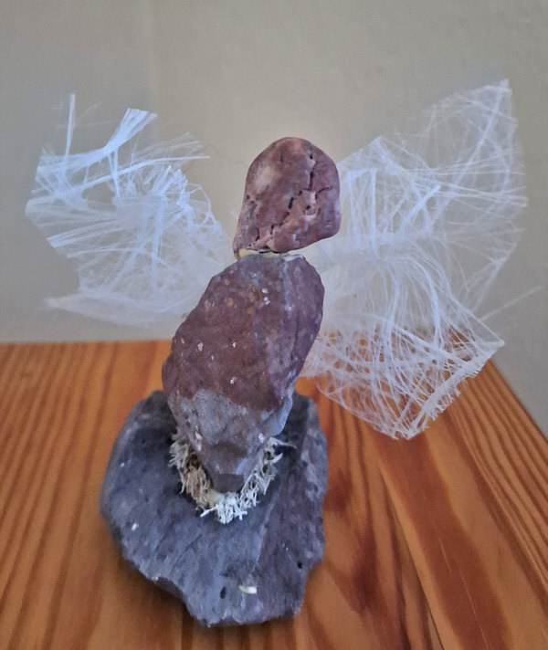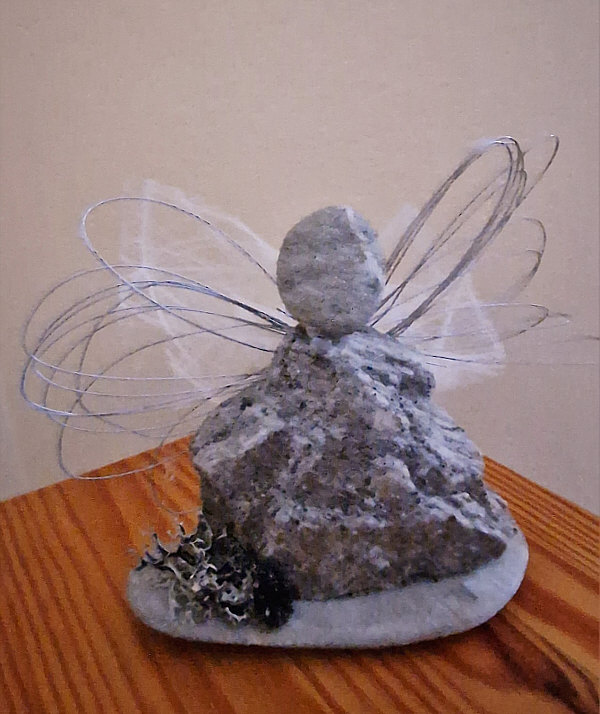 Heidi, die Freundin von Moni, bastelt Engel aus Steinen: